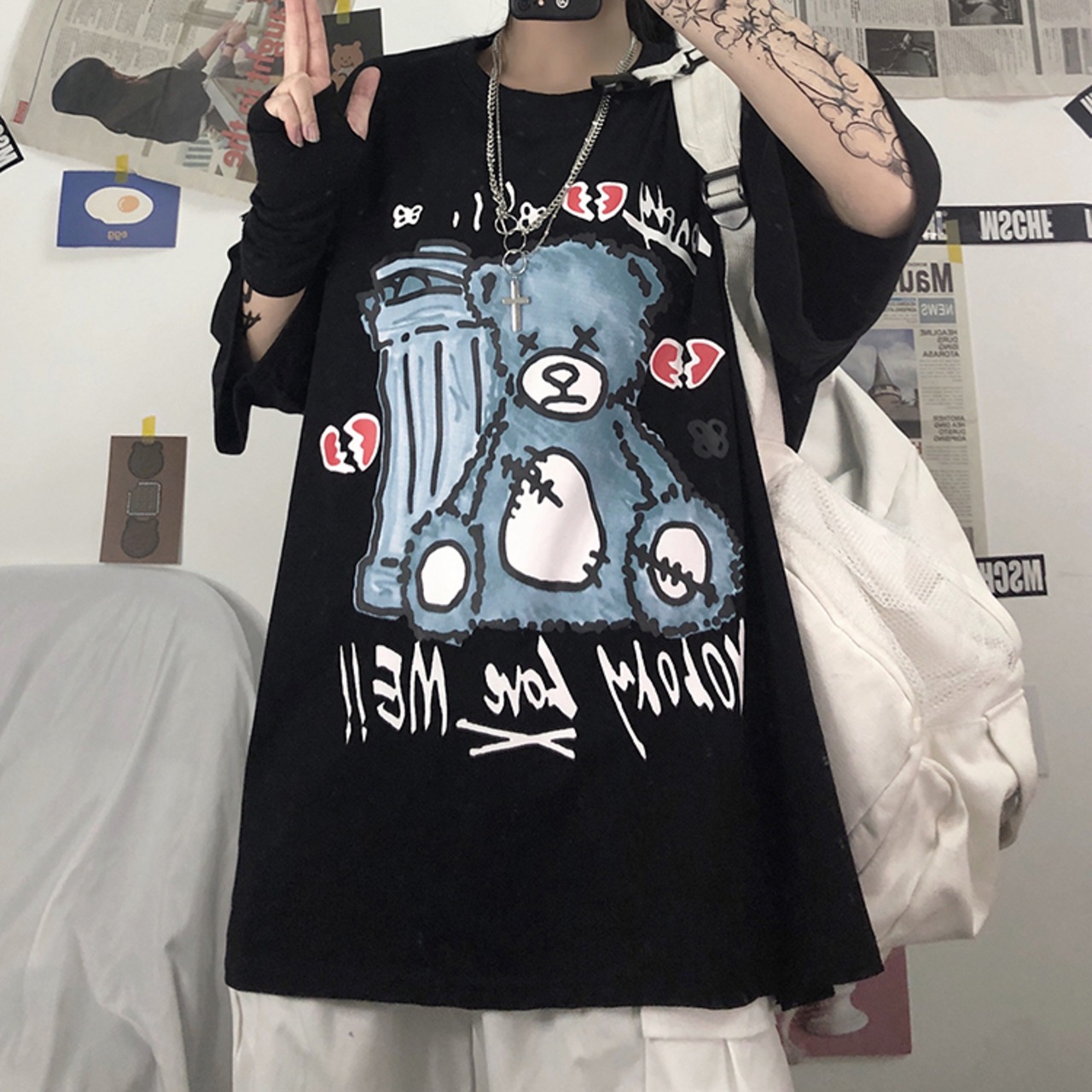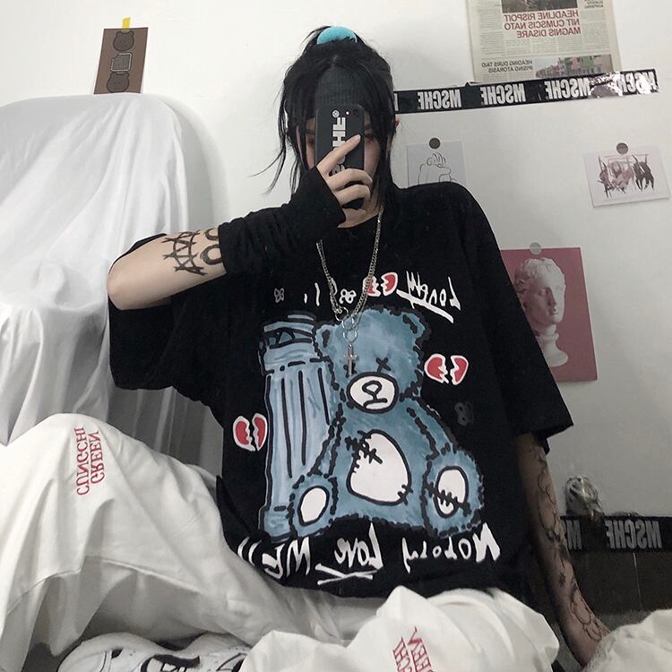 新品 ダークプリント柄Tシャツ 大人女子☆ ⦿韓国 韓流 オルチャン K-pop アイドル ジャケット スーツ Tシャツ カーディガン ニット フーディー トレーナー シャツ タンクトップ アクセサリー ペンダント ネックレス ブレスレット リング ピアス バッグ 7A1405302 | K19 FASHION