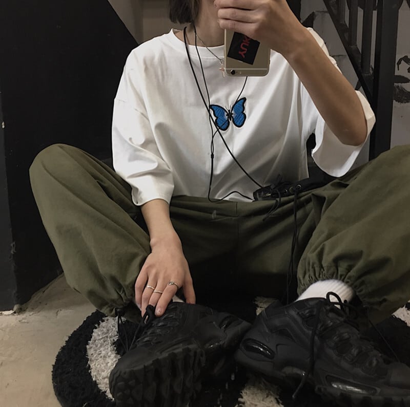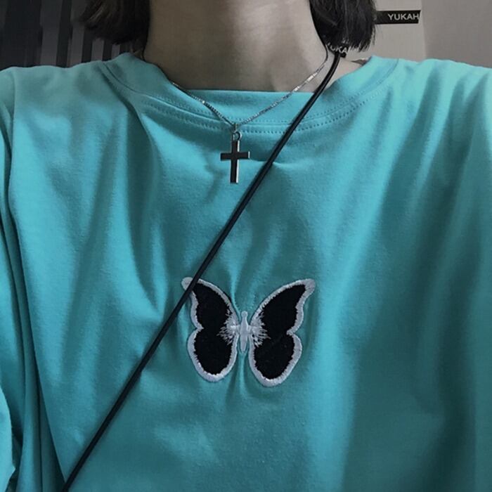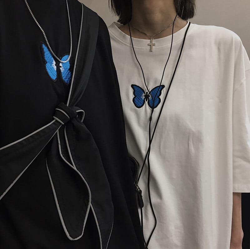 新品 刺繍Butterfly蝶デザインオーバーサイズTシャツ メンズレディース 大人女子☆原宿系 ⦿韓国 韓流 オルチャン K-pop アイドル ジャケット スーツ Tシャツ カーディガン ニット フーディー トレーナー シャツ タンクトップ アクセサリー ペンダント ネックレス ブレスレット リング ピアス バッグ 7A0155364 | K19 FASHION