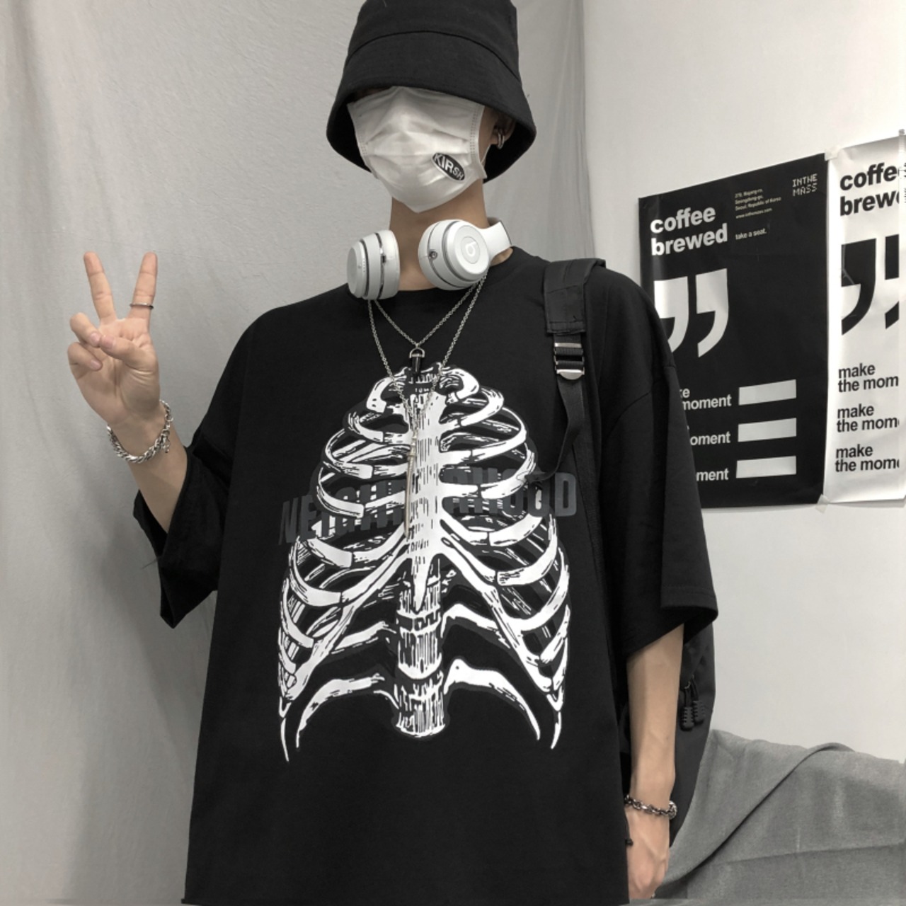 新品 ダークプリント柄Tシャツ 大人女子☆ ⦿韓国 韓流 オルチャン K-pop アイドル ジャケット スーツ Tシャツ カーディガン ニット フーディー トレーナー シャツ タンクトップ アクセサリー ペンダント ネックレス ブレスレット リング ピアス バッグ 7A9041747 | K19 FASHION