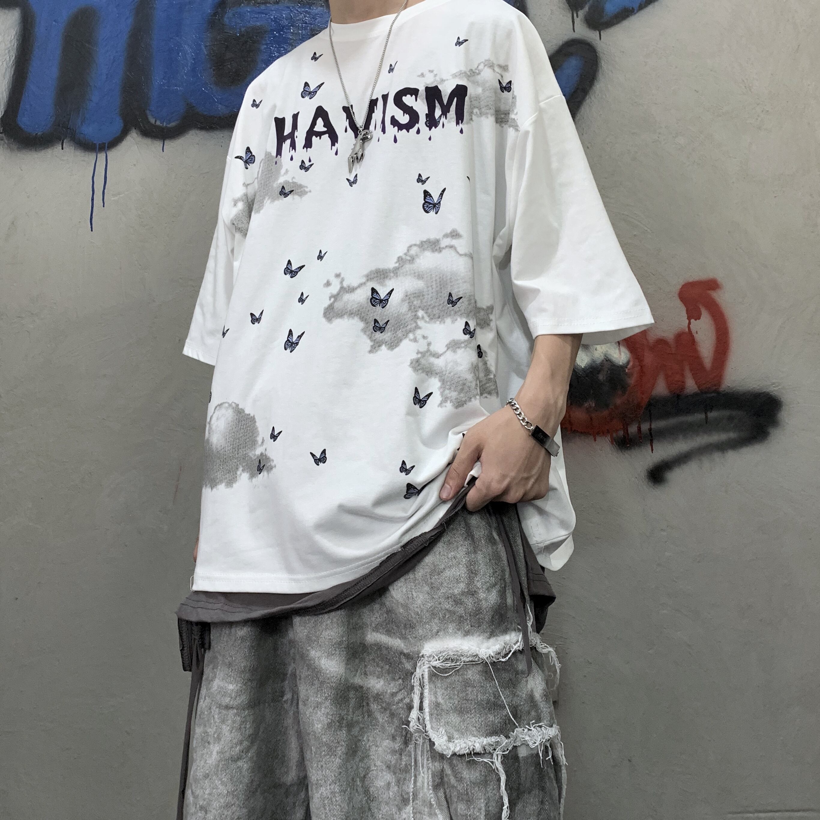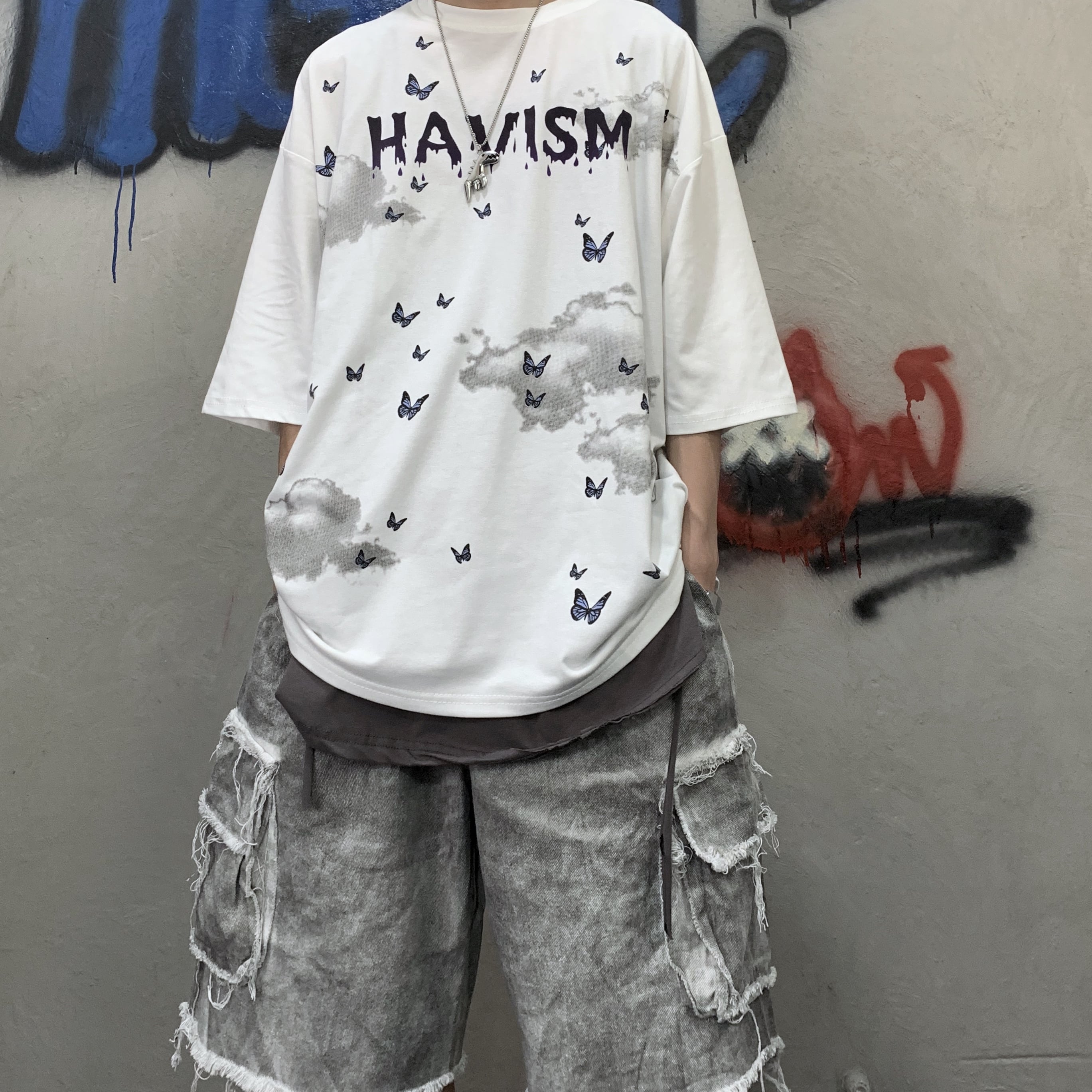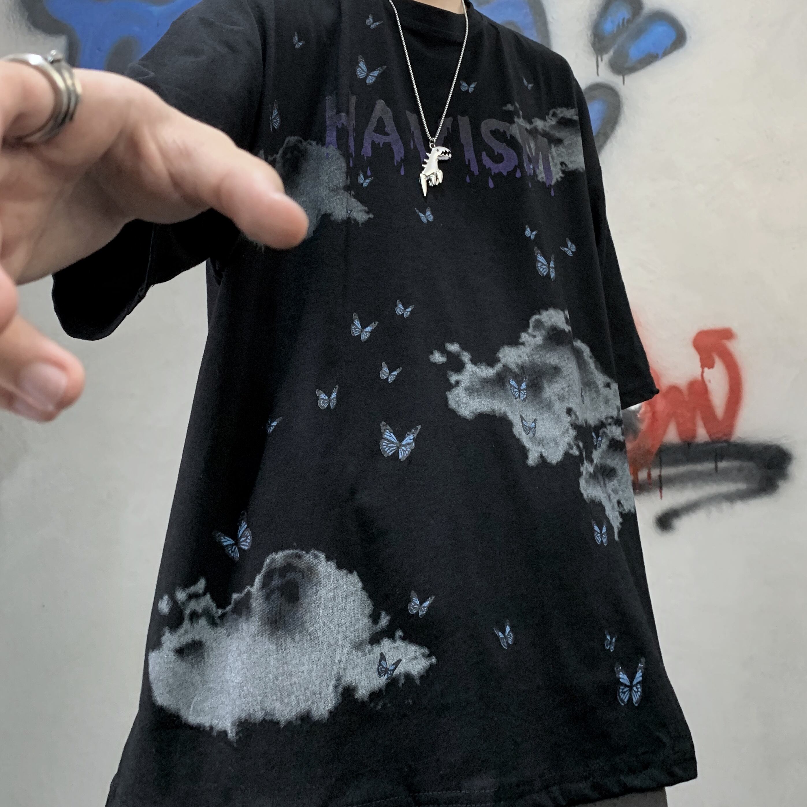 新品 スタンダードダークButterflyデザイン プリント柄Tシャツ 大人女子☆ レトロ ストリート 原宿系 ⦿韓国 韓流 オルチャン K-pop アイドル ジャケット スーツ Tシャツ カーディガン ニット フーディー トレーナー シャツ タンクトップ アクセサリー ペンダント ネックレス ブレスレット リング ピアス バッグ 7A7201882 | K19 FASHION