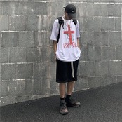 新品 ダークパターンプリントTシャツ 大人女子☆ ストリート ⦿韓国 韓流 オルチャン K-pop アイドル ジャケット スーツ Tシャツ カーディガン ニット フーディー トレーナー シャツ タンクトップ アクセサリー ペンダント ネックレス ブレスレット リング ピアス バッグ 7A4987491 | K19 FASHION