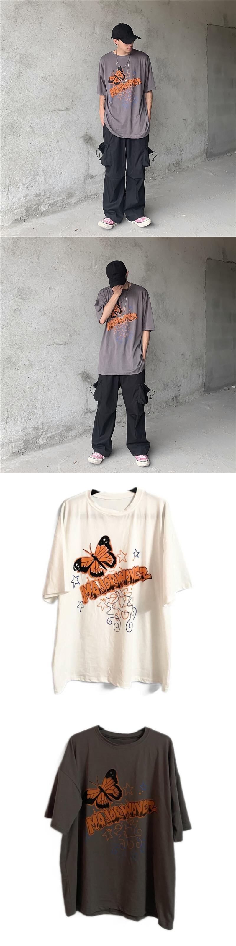 新品 Butterflyデザイン プリントTシャツ 大人女子☆ ストリート ⦿韓国 韓流 オルチャン K-pop アイドル ジャケット スーツ Tシャツ カーディガン ニット フーディー トレーナー シャツ タンクトップ アクセサリー ペンダント ネックレス ブレスレット リング ピアス バッグ 7A4961942 | K19 FASHION