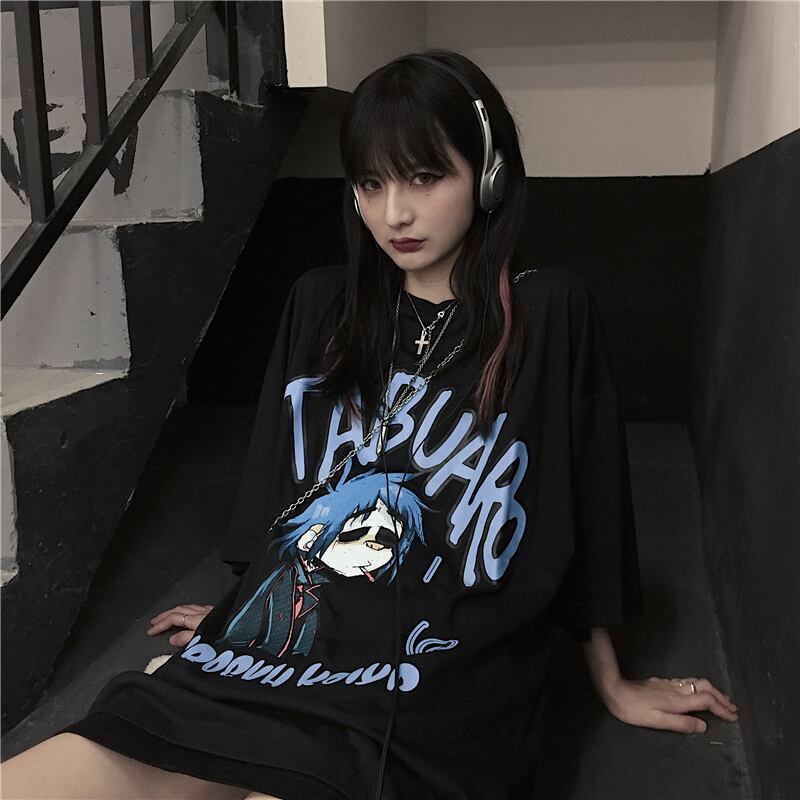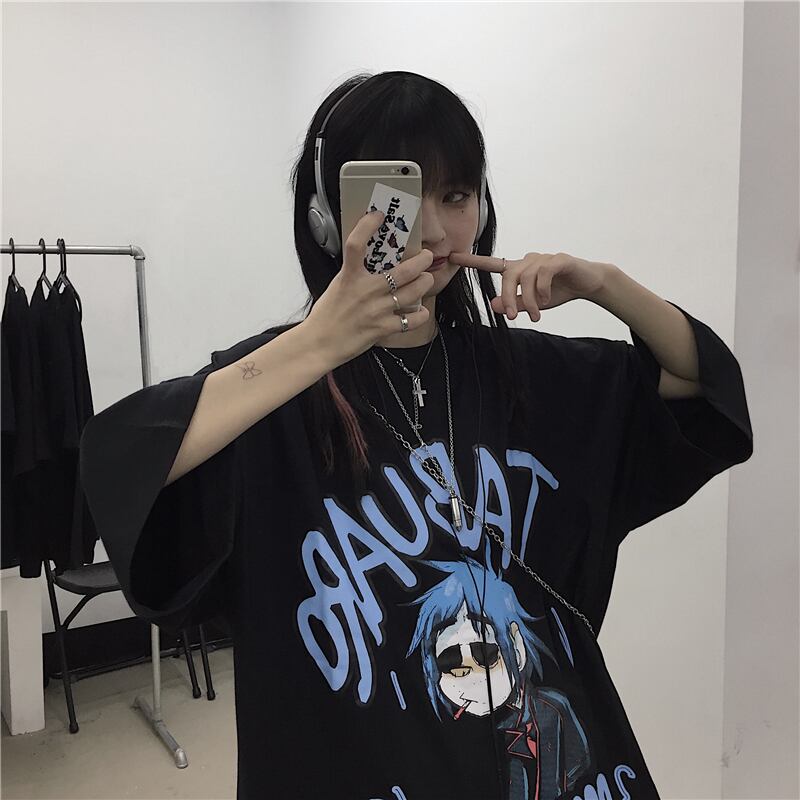 新品 ダークプリントTシャツ 大人女子☆ ストリート ⦿韓国 韓流 オルチャン K-pop アイドル ジャケット スーツ Tシャツ カーディガン ニット フーディー トレーナー シャツ タンクトップ アクセサリー ペンダント ネックレス ブレスレット リング ピアス バッグ 7A7256419 | K19 FASHION