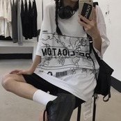 新品 ラインプリントTシャツ 大人女子☆ ストリート 原宿系 ⦿韓国 韓流 オルチャン K-pop アイドル ジャケット スーツ Tシャツ カーディガン ニット フーディー トレーナー シャツ タンクトップ アクセサリー ペンダント ネックレス ブレスレット リング ピアス バッグ 7A4412565 | K19 FASHION