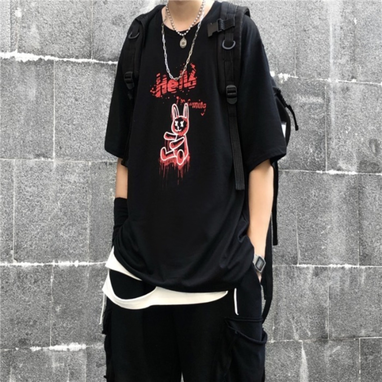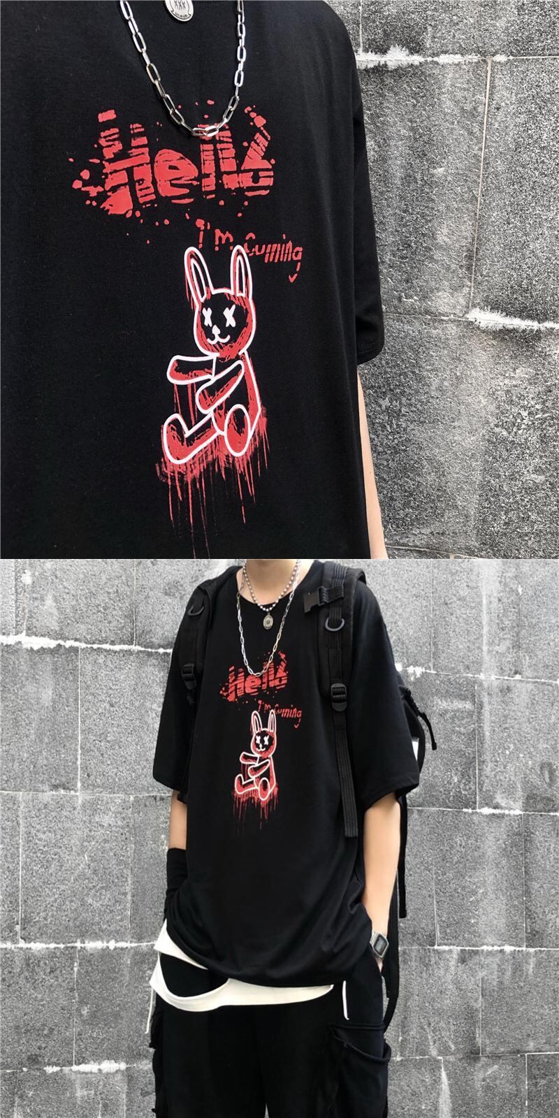 新品 ダークプリント柄Tシャツ 大人女子☆ ストリート ⦿韓国 韓流 オルチャン K-pop アイドル ジャケット スーツ Tシャツ カーディガン ニット フーディー トレーナー シャツ タンクトップ アクセサリー ペンダント ネックレス ブレスレット リング ピアス バッグ 7A0659620 | K19 FASHION
