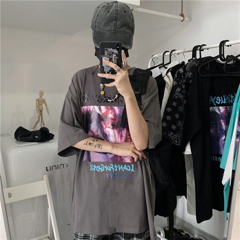 新品 ダークプリントTシャツ 大人女子☆ ⦿韓国 韓流 オルチャン K-pop アイドル ジャケット スーツ Tシャツ カーディガン ニット フーディー トレーナー シャツ タンクトップ アクセサリー ペンダント ネックレス ブレスレット リング ピアス バッグ 7A0189720 | K19 FASHION