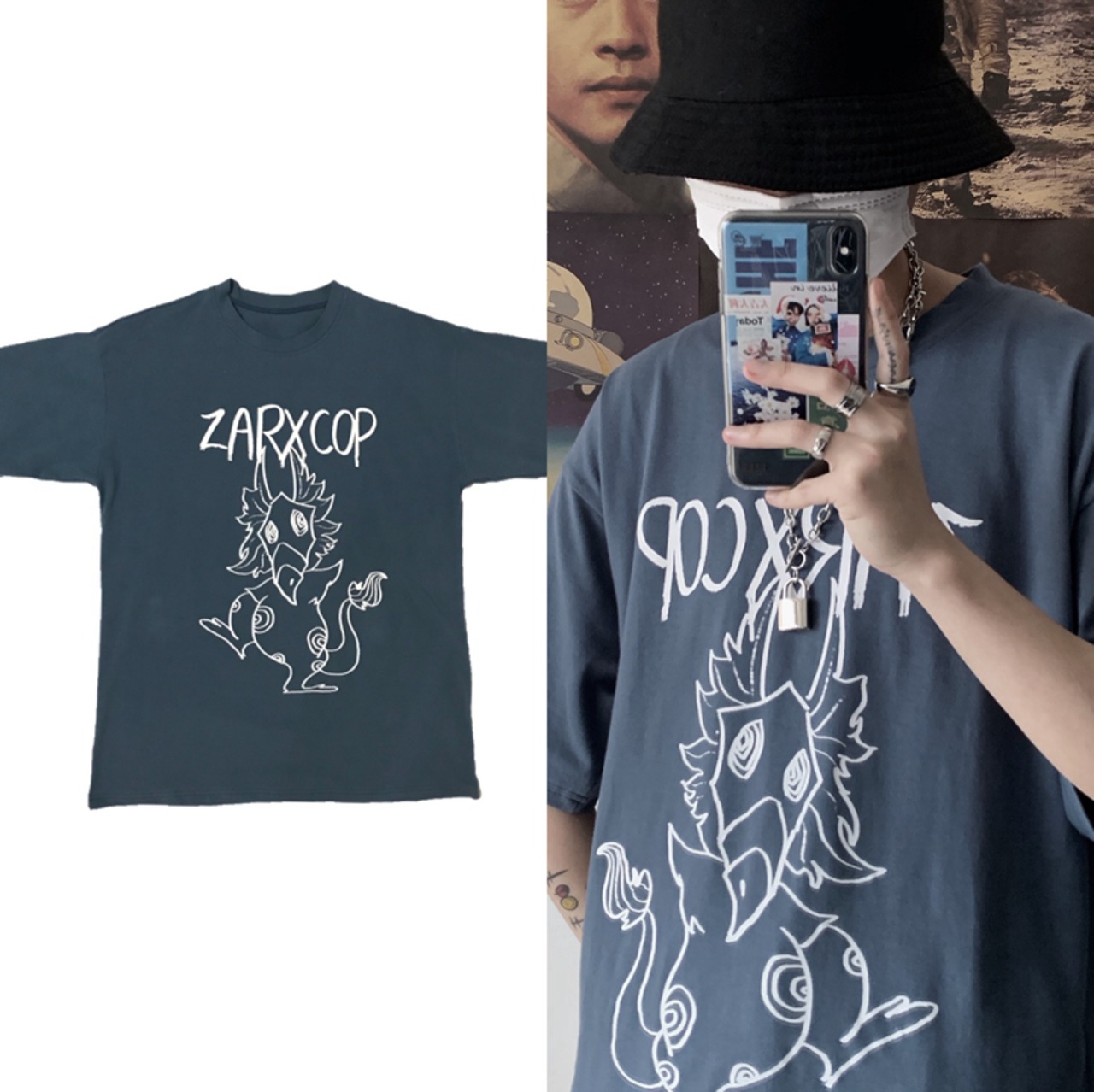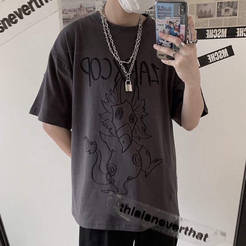 新品 ダークプリント柄Tシャツ 大人女子☆ ⦿韓国 韓流 オルチャン K-pop アイドル ジャケット スーツ Tシャツ カーディガン ニット フーディー トレーナー シャツ タンクトップ アクセサリー ペンダント ネックレス ブレスレット リング ピアス バッグ 7A6952119 | K19 FASHION