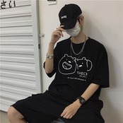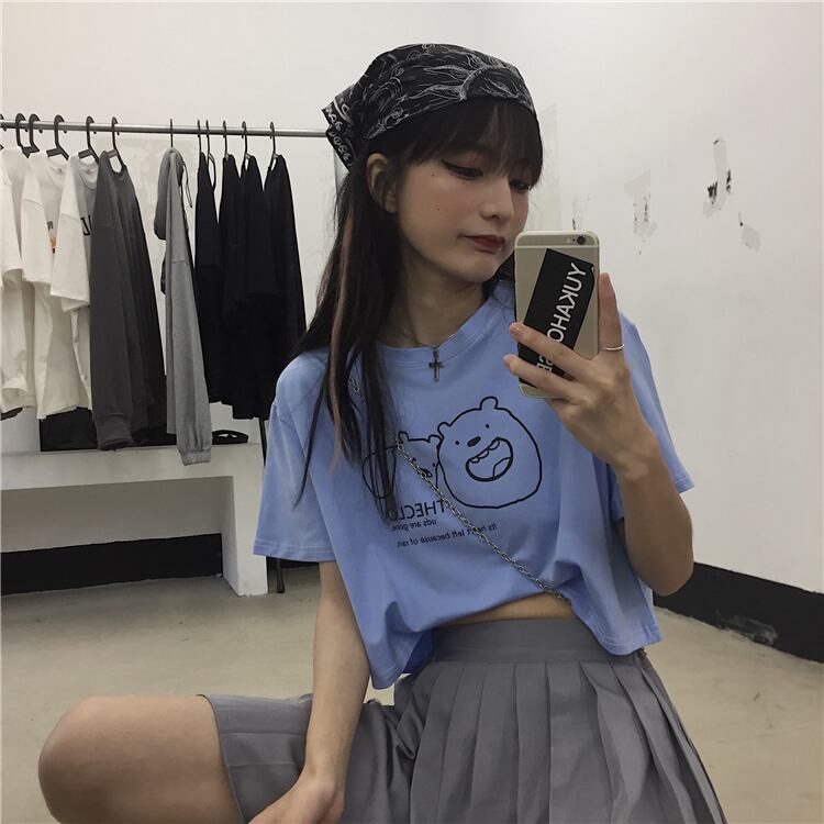 新品 プリント柄半袖スリーブTシャツ 大人女子☆ ショート 原宿系 ⦿韓国 韓流 オルチャン K-pop アイドル ジャケット スーツ Tシャツ カーディガン ニット フーディー トレーナー シャツ タンクトップ アクセサリー ペンダント ネックレス ブレスレット リング ピアス バッグ 7A3045333 | K19 FASHION