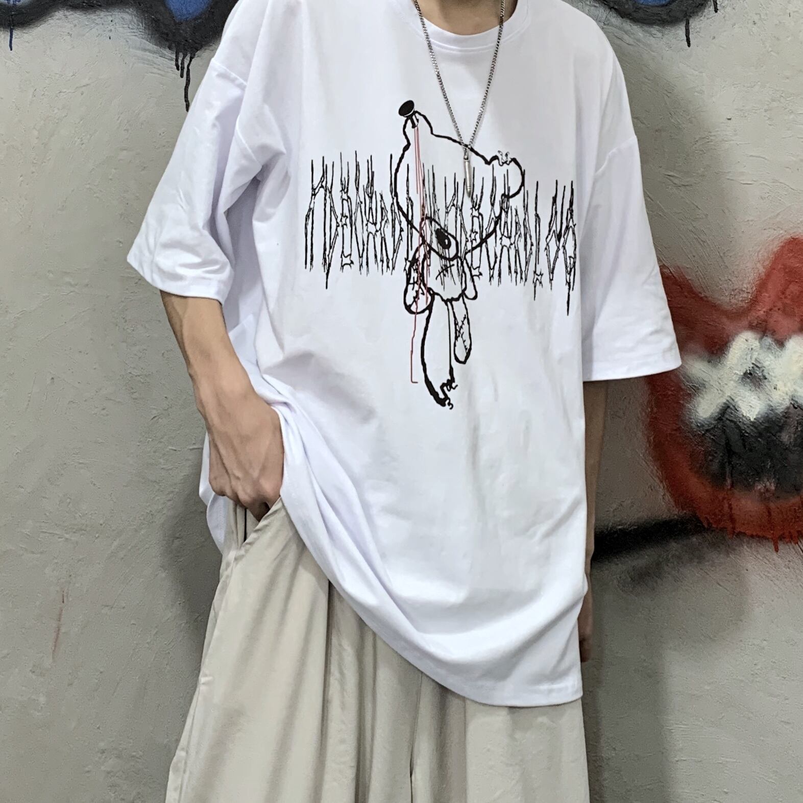 新品 ダークプリント柄Tシャツ 大人女子☆ ストリート ⦿韓国 韓流 オルチャン K-pop アイドル ジャケット スーツ Tシャツ カーディガン ニット フーディー トレーナー シャツ タンクトップ アクセサリー ペンダント ネックレス ブレスレット リング ピアス バッグ 7A1064148 | K19 FASHION