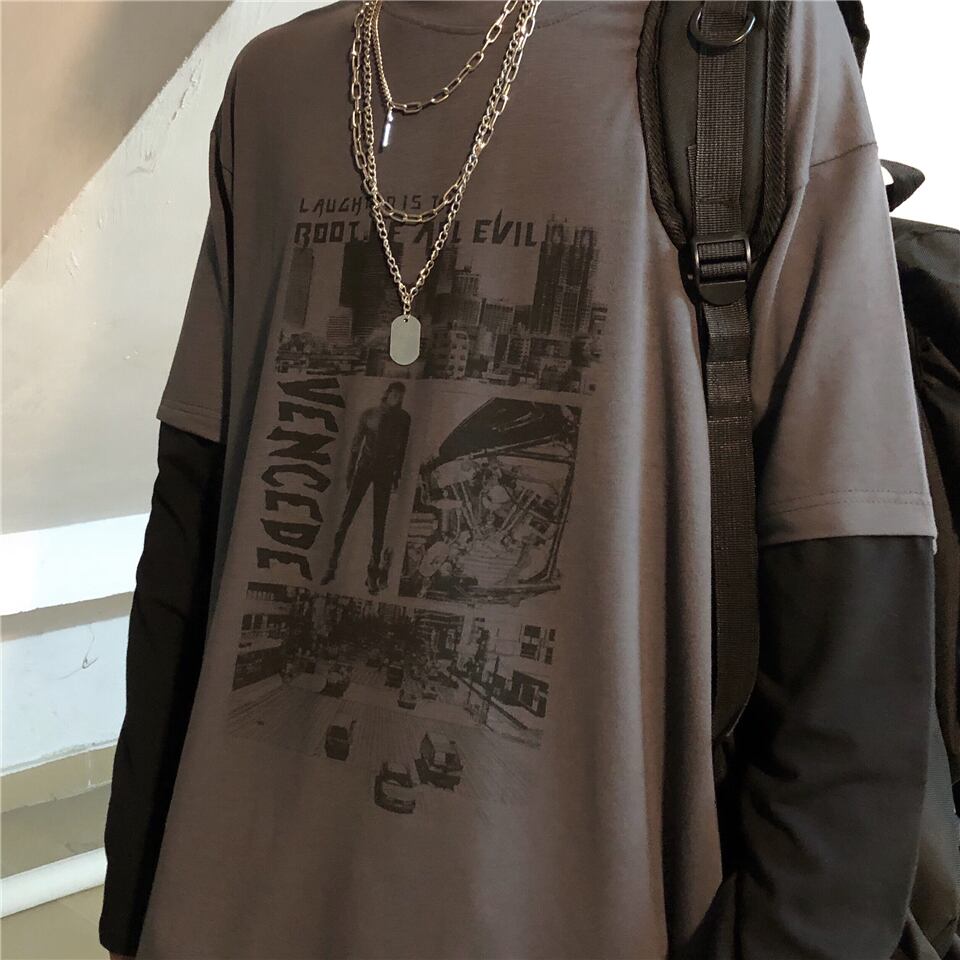 新品 ダークTシャツ 大人女子☆ ロング ⦿韓国 韓流 オルチャン K-pop アイドル ジャケット スーツ Tシャツ カーディガン ニット フーディー トレーナー シャツ タンクトップ アクセサリー ペンダント ネックレス ブレスレット リング ピアス バッグ 7A0213428 | K19 FASHION