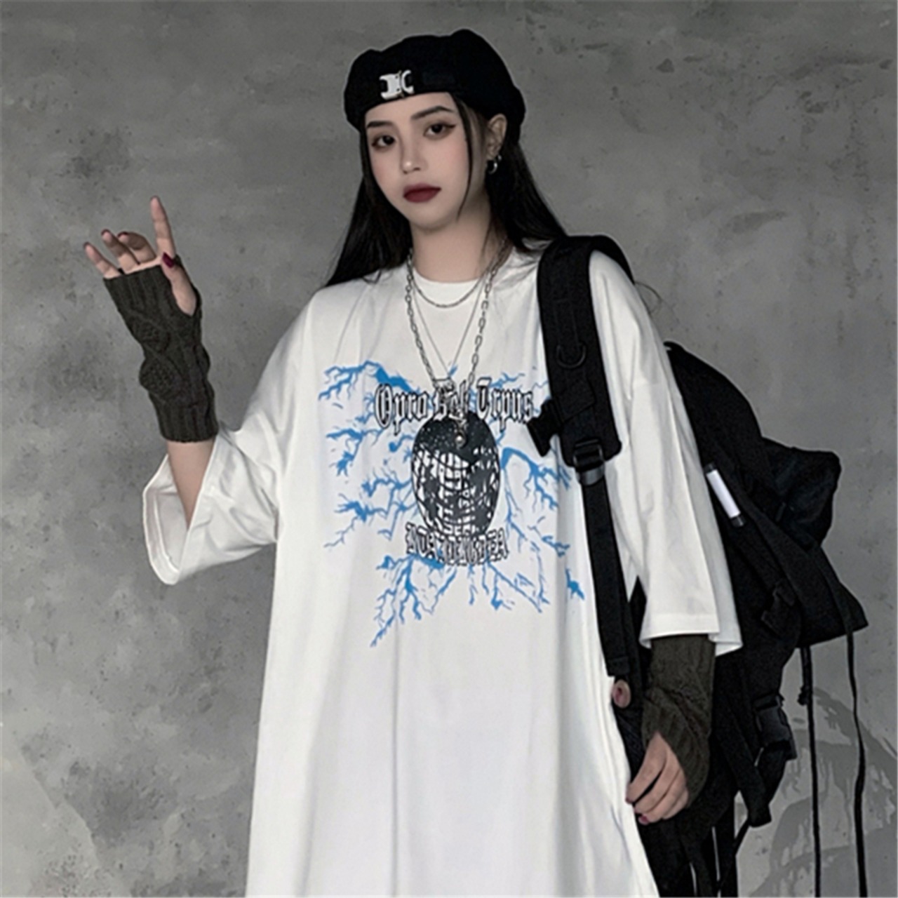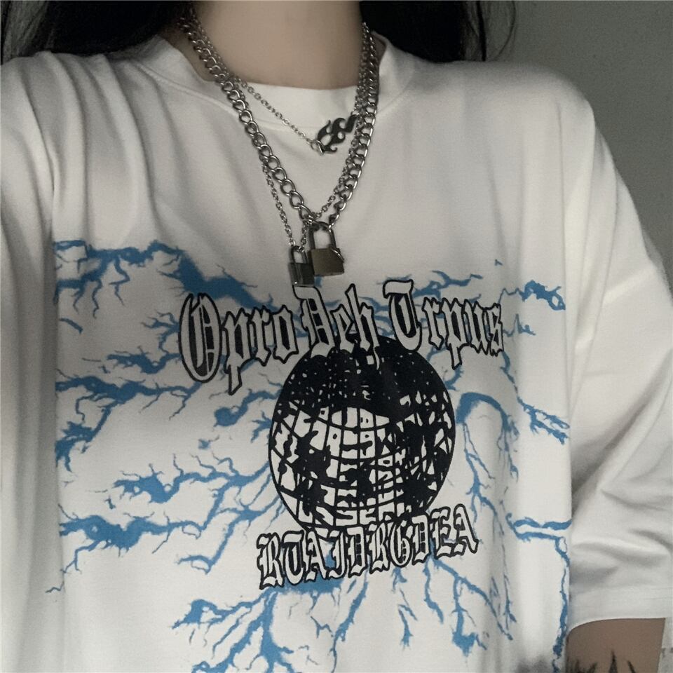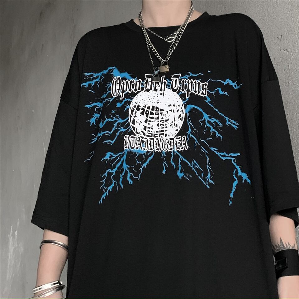 新品 ダークプリント半袖スリーブTシャツ 大人女子☆ ショート ストリート 原宿系 ⦿韓国 韓流 オルチャン K-pop アイドル ジャケット スーツ Tシャツ カーディガン ニット フーディー トレーナー シャツ タンクトップ アクセサリー ペンダント ネックレス ブレスレット リング ピアス バッグ 7A3722934 | K19 FASHION