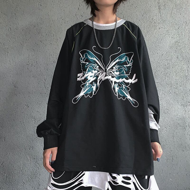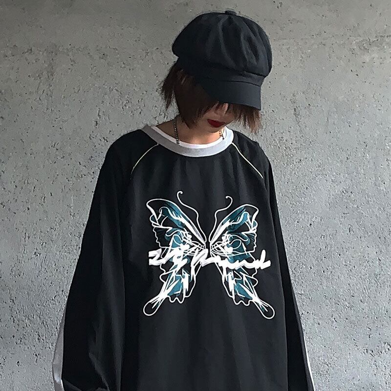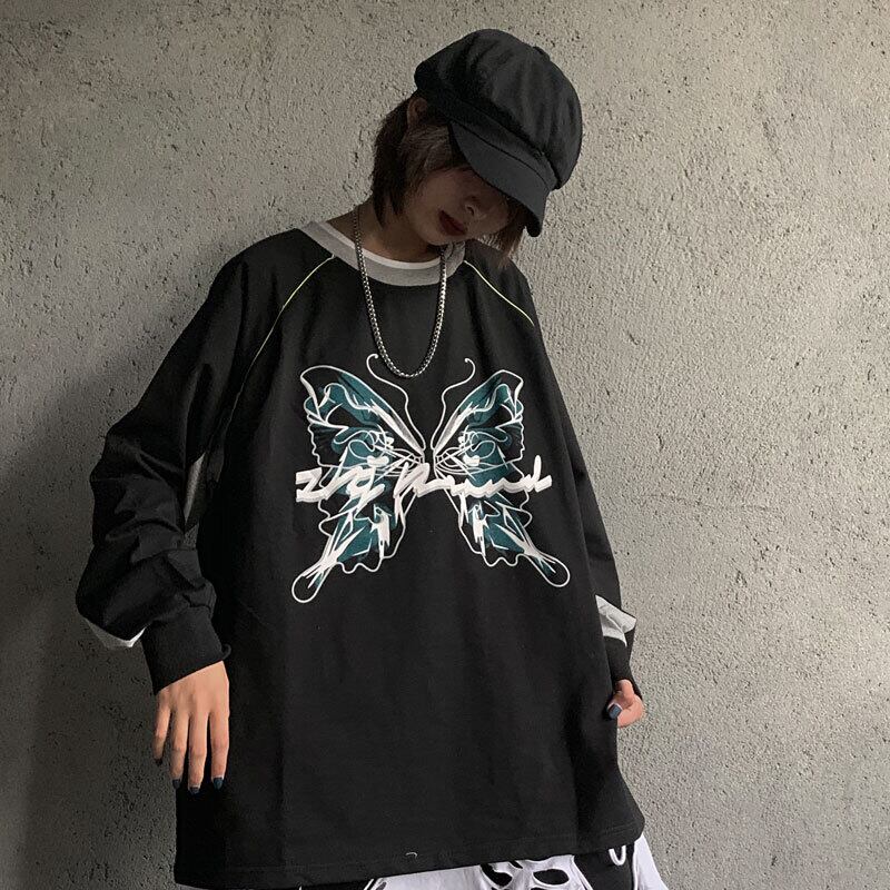 新品 スタンダードダークButterflyデザイン ラウンドネック長袖スリーブTシャツ 大人女子☆ ロング レトロ 原宿系 ステッチ ⦿韓国 韓流 オルチャン K-pop アイドル ジャケット スーツ Tシャツ カーディガン ニット フーディー トレーナー シャツ タンクトップ アクセサリー ペンダント ネックレス ブレスレット リング ピアス バッグ 7A0146309 | K19 FASHION
