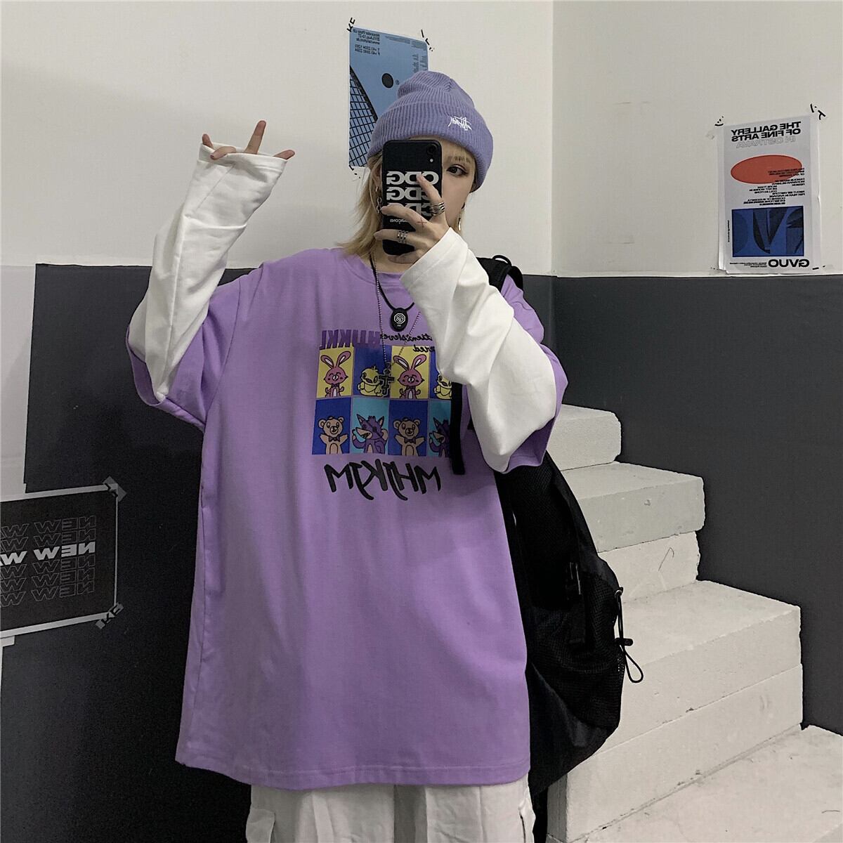 新品 プリント大人女子☆ ロング シャツ Tシャツ ⦿韓国 韓流 オルチャン K-pop アイドル ジャケット スーツ Tシャツ カーディガン ニット フーディー トレーナー シャツ タンクトップ アクセサリー ペンダント ネックレス ブレスレット リング ピアス バッグ 7A6853620 | K19 FASHION