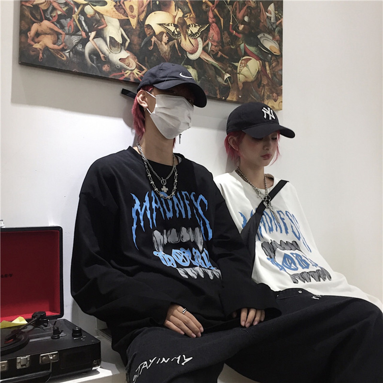 新品 ダークグレーグレーブルーパターンTシャツ 大人女子☆ ロング ストリート ⦿韓国 韓流 オルチャン K-pop アイドル ジャケット スーツ Tシャツ カーディガン ニット フーディー トレーナー シャツ タンクトップ アクセサリー ペンダント ネックレス ブレスレット リング ピアス バッグ 7A7120162 | K19 FASHION