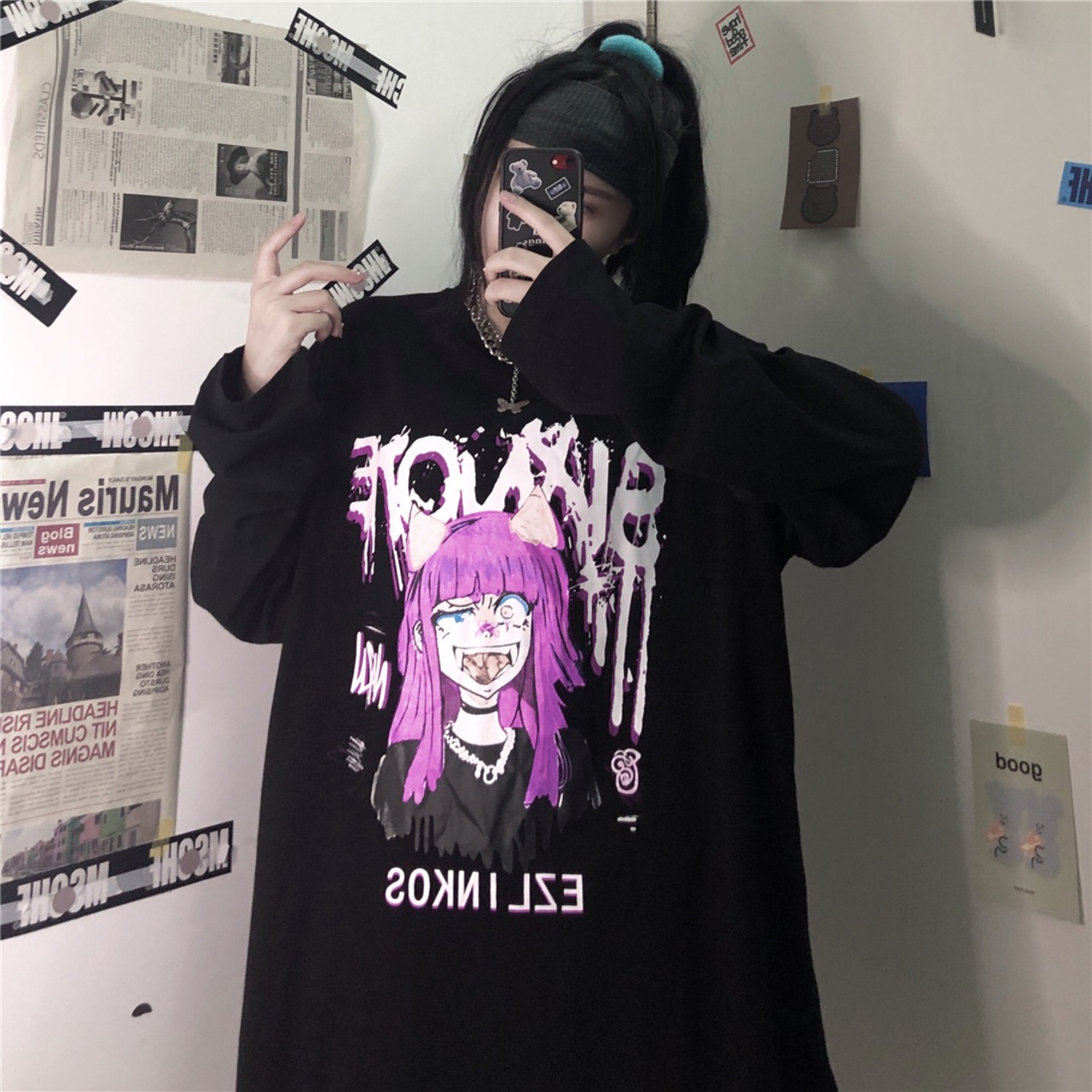 新品 ウィンタープリントTシャツ 大人女子☆ ロング 原宿系 冬物 ⦿韓国 韓流 オルチャン K-pop アイドル ジャケット スーツ Tシャツ カーディガン ニット フーディー トレーナー シャツ タンクトップ アクセサリー ペンダント ネックレス ブレスレット リング ピアス バッグ 7A4062690 | K19 FASHION