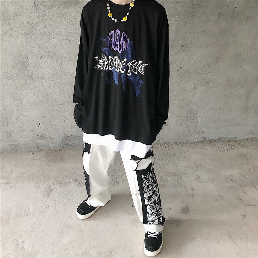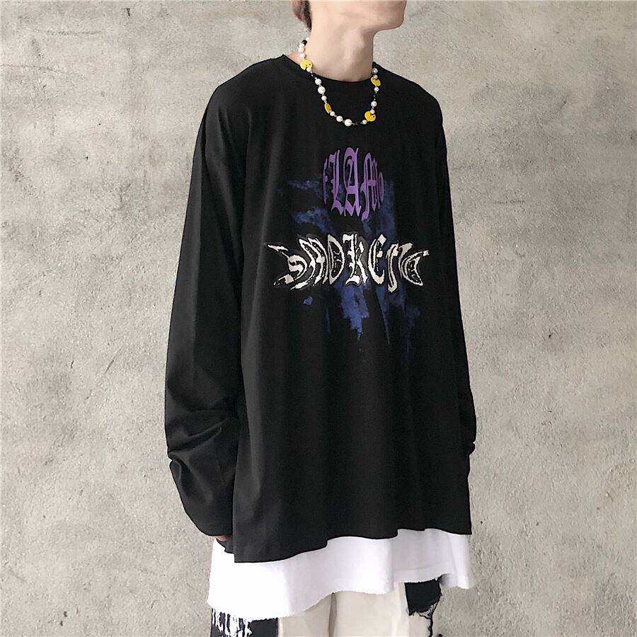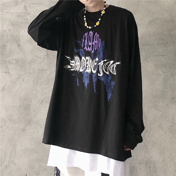 新品 ♡ダークプリント柄Tシャツ 大人女子☆ ロング ストリート ⦿韓国 韓流 オルチャン K-pop アイドル ジャケット スーツ Tシャツ カーディガン ニット フーディー トレーナー シャツ タンクトップ アクセサリー ペンダント ネックレス ブレスレット リング ピアス バッグ 7A0534743 | K19 FASHION
