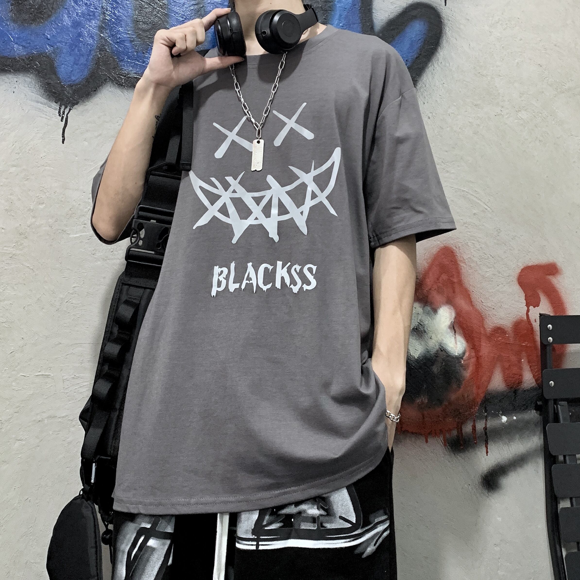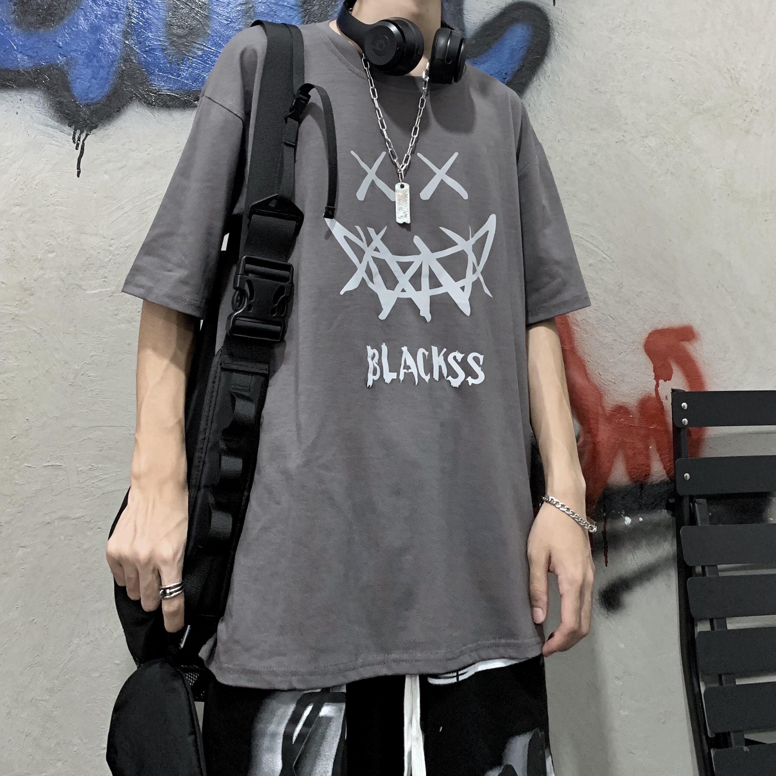 新品 ダークTシャツ 大人女子☆ ストリート ⦿韓国 韓流 オルチャン K-pop アイドル ジャケット スーツ Tシャツ カーディガン ニット フーディー トレーナー シャツ タンクトップ アクセサリー ペンダント ネックレス ブレスレット リング ピアス バッグ 7A5923422 | K19 FASHION