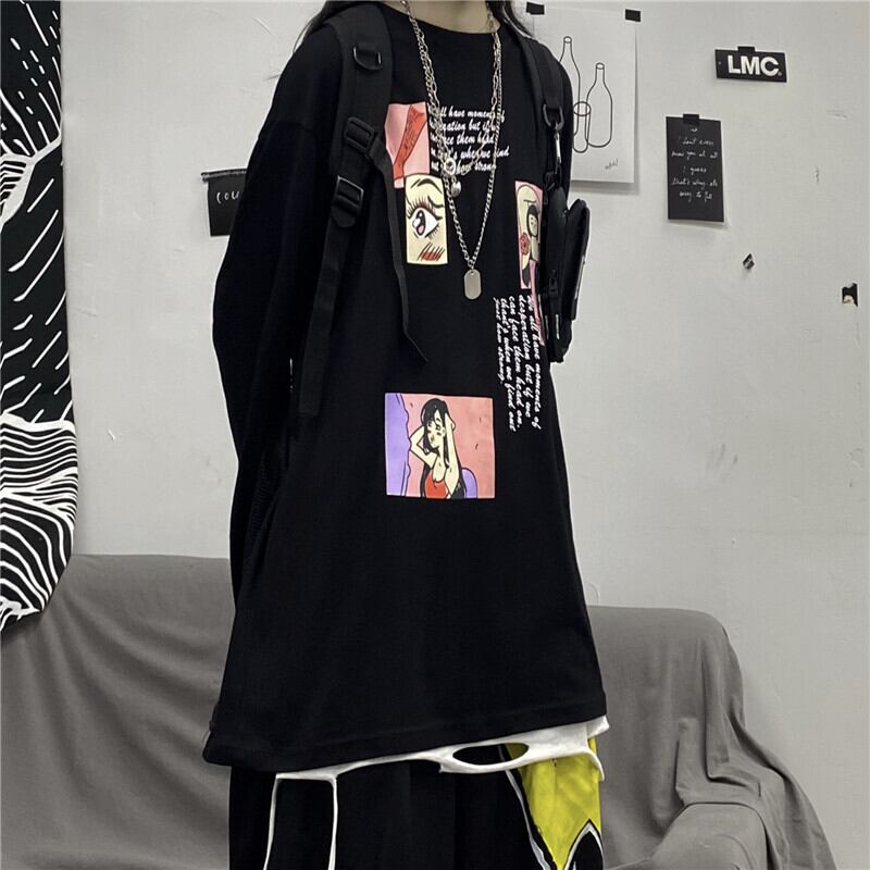 新品 プリント長袖スリーブTシャツ 大人女子☆ ロング ストリート 原宿系 ⦿韓国 韓流 オルチャン K-pop アイドル ジャケット スーツ Tシャツ カーディガン ニット フーディー トレーナー シャツ タンクトップ アクセサリー ペンダント ネックレス ブレスレット リング ピアス バッグ 7A7079310 | K19 FASHION
