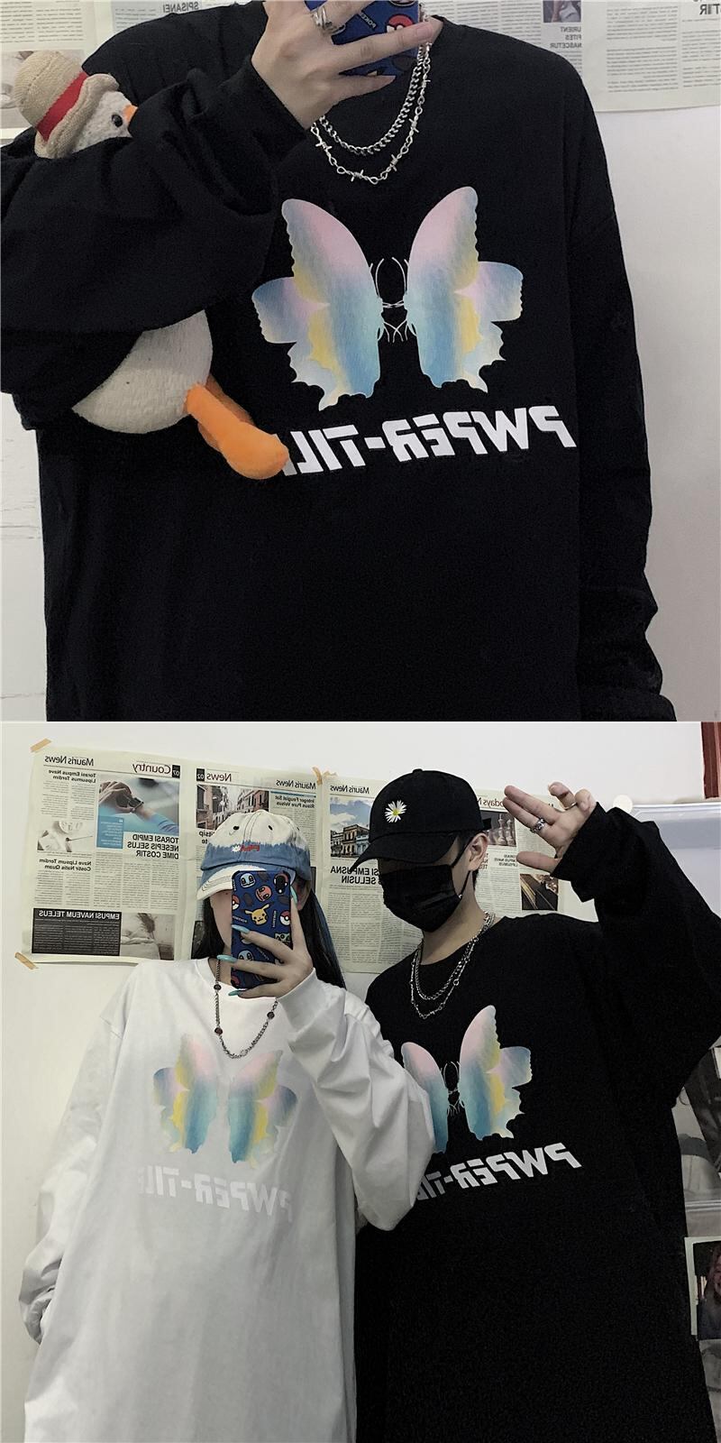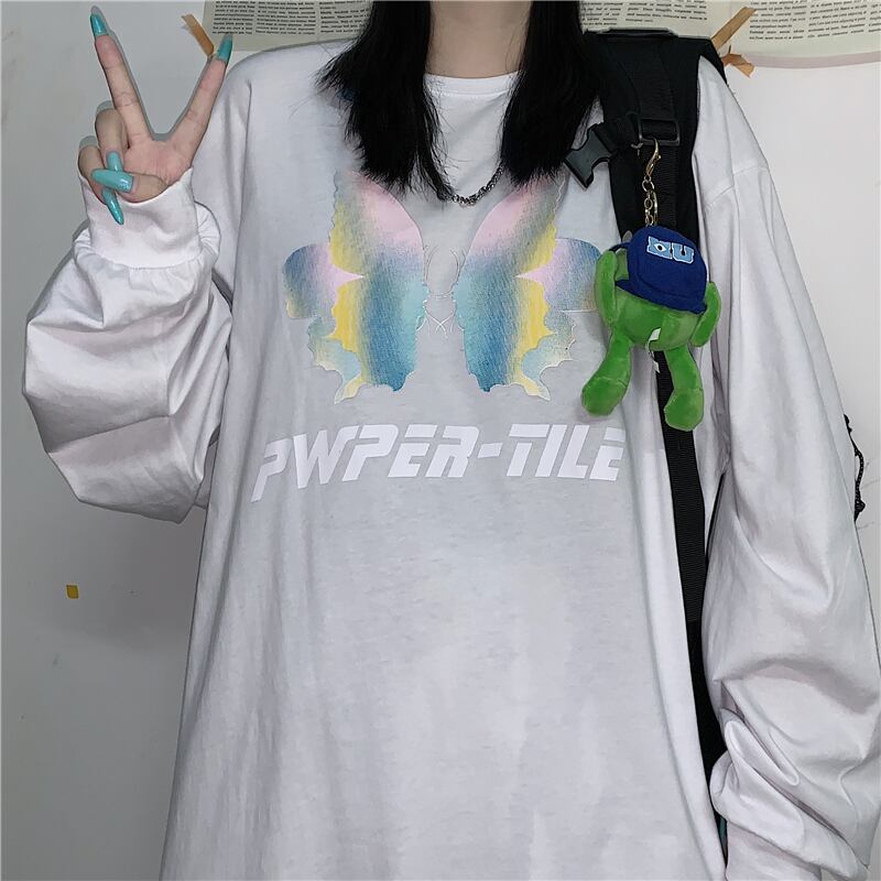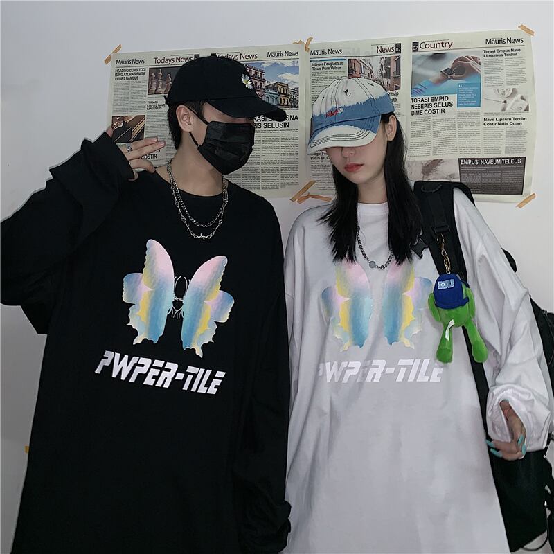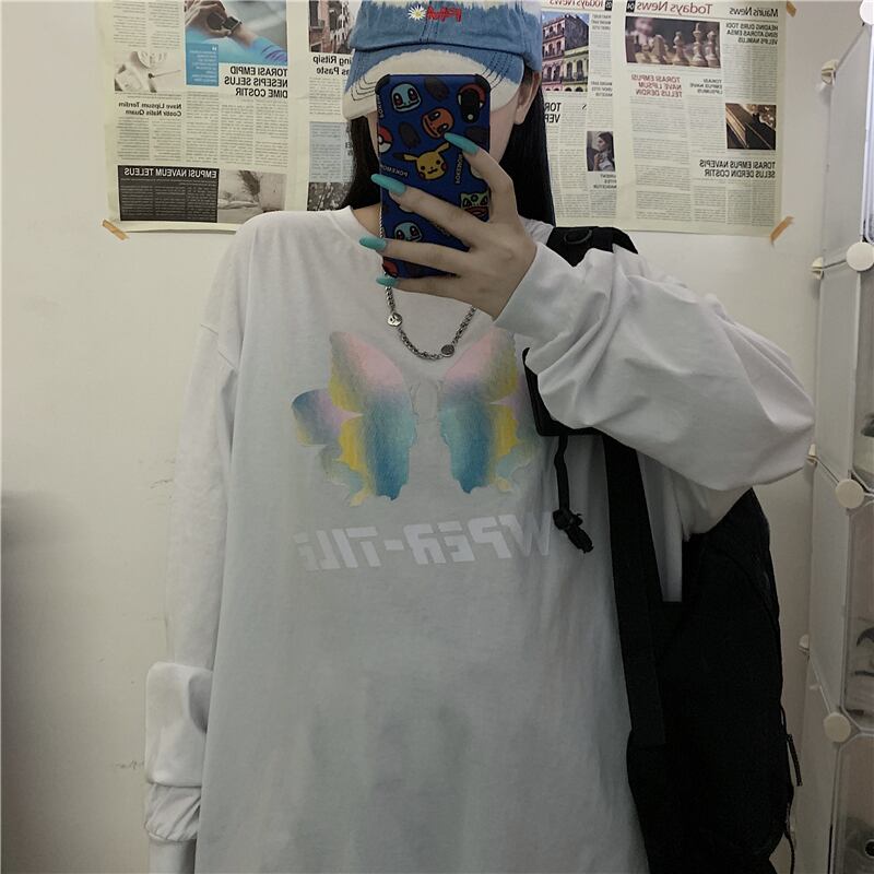 新品 ダークButterflyデザイン プリントラウンドネック長袖スリーブTシャツ 大人女子☆ ロング ストリート ⦿韓国 韓流 オルチャン K-pop アイドル ジャケット スーツ Tシャツ カーディガン ニット フーディー トレーナー シャツ タンクトップ アクセサリー ペンダント ネックレス ブレスレット リング ピアス バッグ 7A4315272 | K19 FASHION