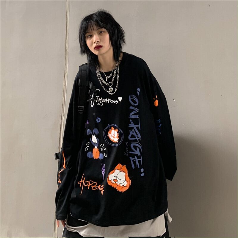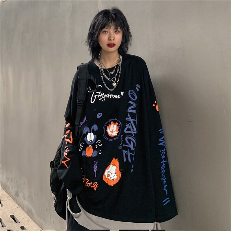新品 スタンダードプリントTシャツ 大人女子☆ ロング レトロ ⦿韓国 韓流 オルチャン K-pop アイドル ジャケット スーツ Tシャツ カーディガン ニット フーディー トレーナー シャツ タンクトップ アクセサリー ペンダント ネックレス ブレスレット リング ピアス バッグ 7A5421574 | K19 FASHION