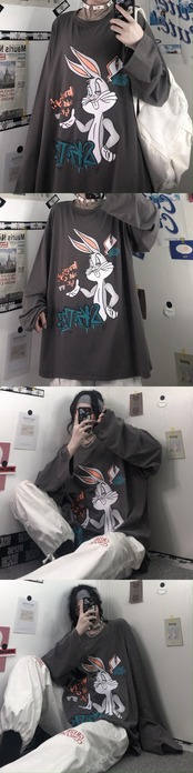新品 プリント柄ラウンドネック長袖スリーブTシャツ 大人女子☆ ロング 原宿系 ⦿韓国 韓流 オルチャン K-pop アイドル ジャケット スーツ Tシャツ カーディガン ニット フーディー トレーナー シャツ タンクトップ アクセサリー ペンダント ネックレス ブレスレット リング ピアス バッグ 7A8321604 | K19 FASHION