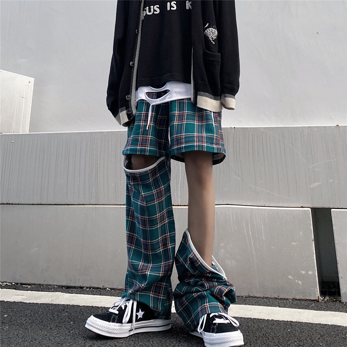 新品 チェック柄パンツ ジッパーカジュアル大人女子☆ 原宿系 ⦿韓国 韓流 オルチャン K-pop アイドル ジャケット スーツ Tシャツ カーディガン ニット フーディー トレーナー シャツ タンクトップ アクセサリー ペンダント ネックレス ブレスレット リング ピアス バッグ 7A86014371233 | K19 FASHION