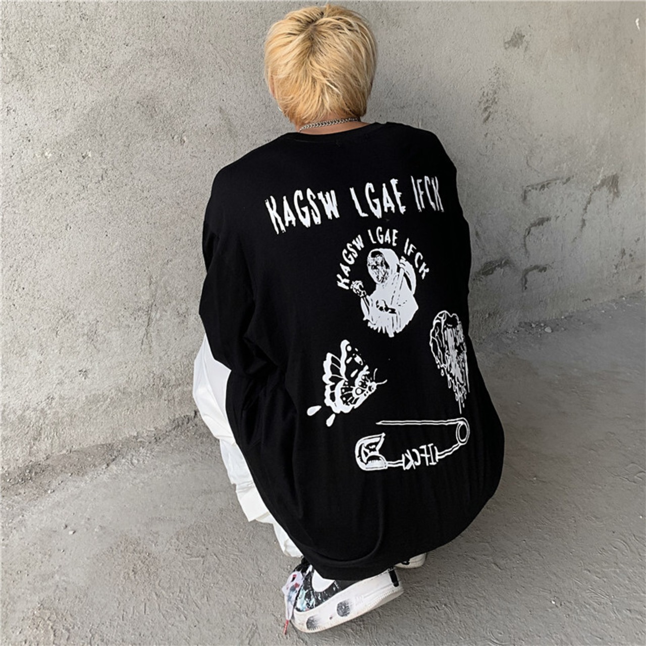 新品 バックプリントTシャツ 大人女子☆ ロング ストリート 原宿系 ⦿韓国 韓流 オルチャン K-pop アイドル ジャケット スーツ Tシャツ カーディガン ニット フーディー トレーナー シャツ タンクトップ アクセサリー ペンダント ネックレス ブレスレット リング ピアス バッグ 7A52573918695 | K19 FASHION