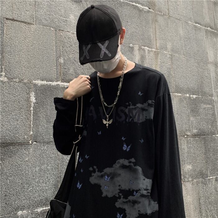 新品 スタンダードButterflyデザイン プリント柄長袖スリーブTシャツ 大人女子☆ ロング レトロ ストリート ⦿韓国 韓流 オルチャン K-pop アイドル ジャケット スーツ Tシャツ カーディガン ニット フーディー トレーナー シャツ タンクトップ アクセサリー ペンダント ネックレス ブレスレット リング ピアス バッグ 7A30463778893 | K19 FASHION