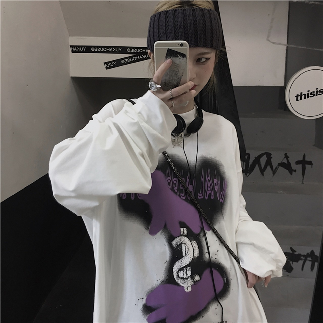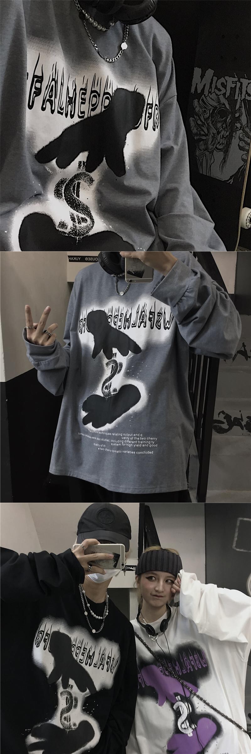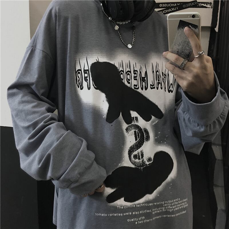 【送料無料】新品 スタンダードダークパターンプリント長袖スリーブTシャツ 大人女子☆ ロング レトロ ストリート ⦿韓国 韓流 オルチャン K-pop アイドル ジャケット スーツ Tシャツ カーディガン ニット フーディー トレーナー シャツ タンクトップ アクセサリー ペンダント ネックレス ブレスレット リング ピアス バッグ 7A60980186706 | K19 FASHION