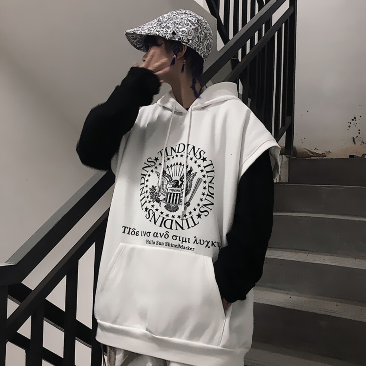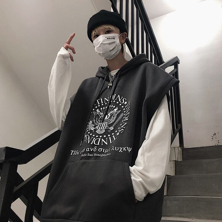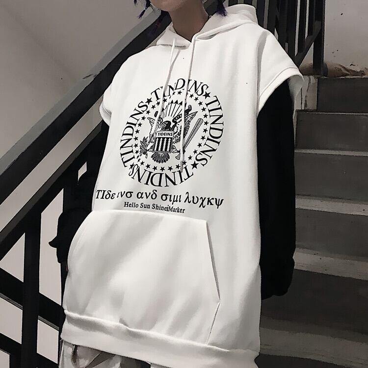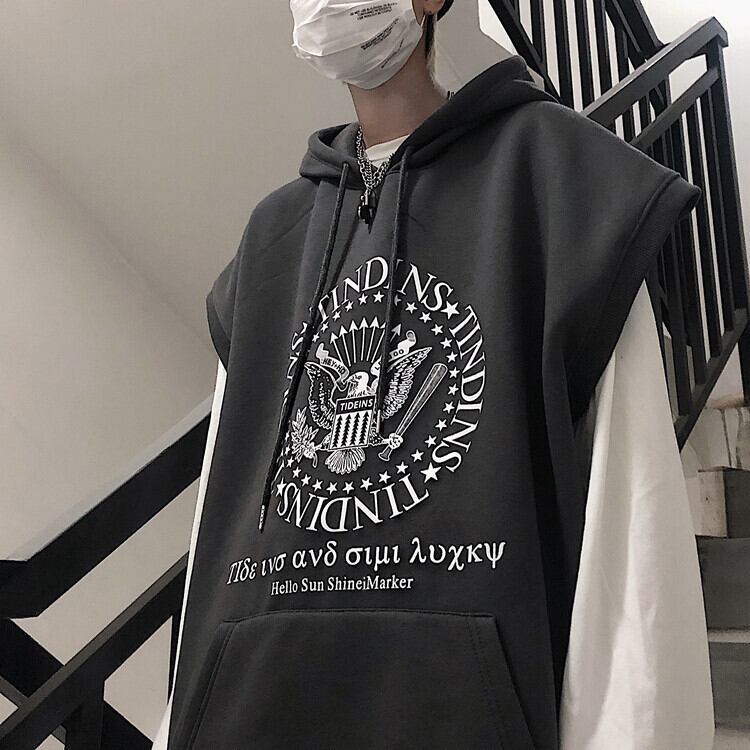 【送料無料】新品 プリントフードノースリーブ大人女子☆ 原宿系 ⦿韓国 韓流 オルチャン K-pop アイドル ジャケット スーツ Tシャツ カーディガン ニット フーディー トレーナー シャツ タンクトップ アクセサリー ペンダント ネックレス ブレスレット リング ピアス バッグ 7A64092607231 | K19 FASHION