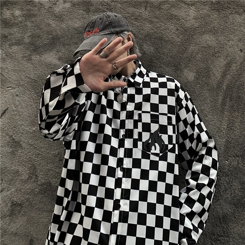 【送料無料】 スタンダード♡ブラック白チェック柄シャツブラウス大人女子☆ ロング ホワイト レトロ ストリート ⦿韓国 韓流 オルチャン K-pop アイドル ジャケット スーツ Tシャツ カーディガン ニット フーディー トレーナー シャツ タンクトップ アクセサリー ペンダント ネックレス ブレスレット リング ピアス バッグ 7A28903062784 | K19 FASHION