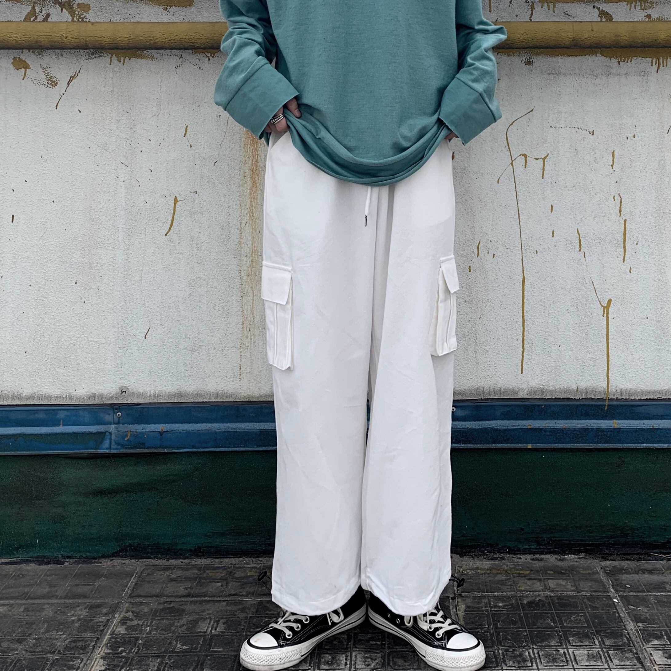 【送料無料】 白パンツ カジュアル大人女子☆ ホワイト ストリート ⦿韓国 韓流 オルチャン K-pop アイドル ジャケット スーツ Tシャツ カーディガン ニット フーディー トレーナー シャツ タンクトップ アクセサリー ペンダント ネックレス ブレスレット リング ピアス バッグ 7A33974908030 | K19 FASHION