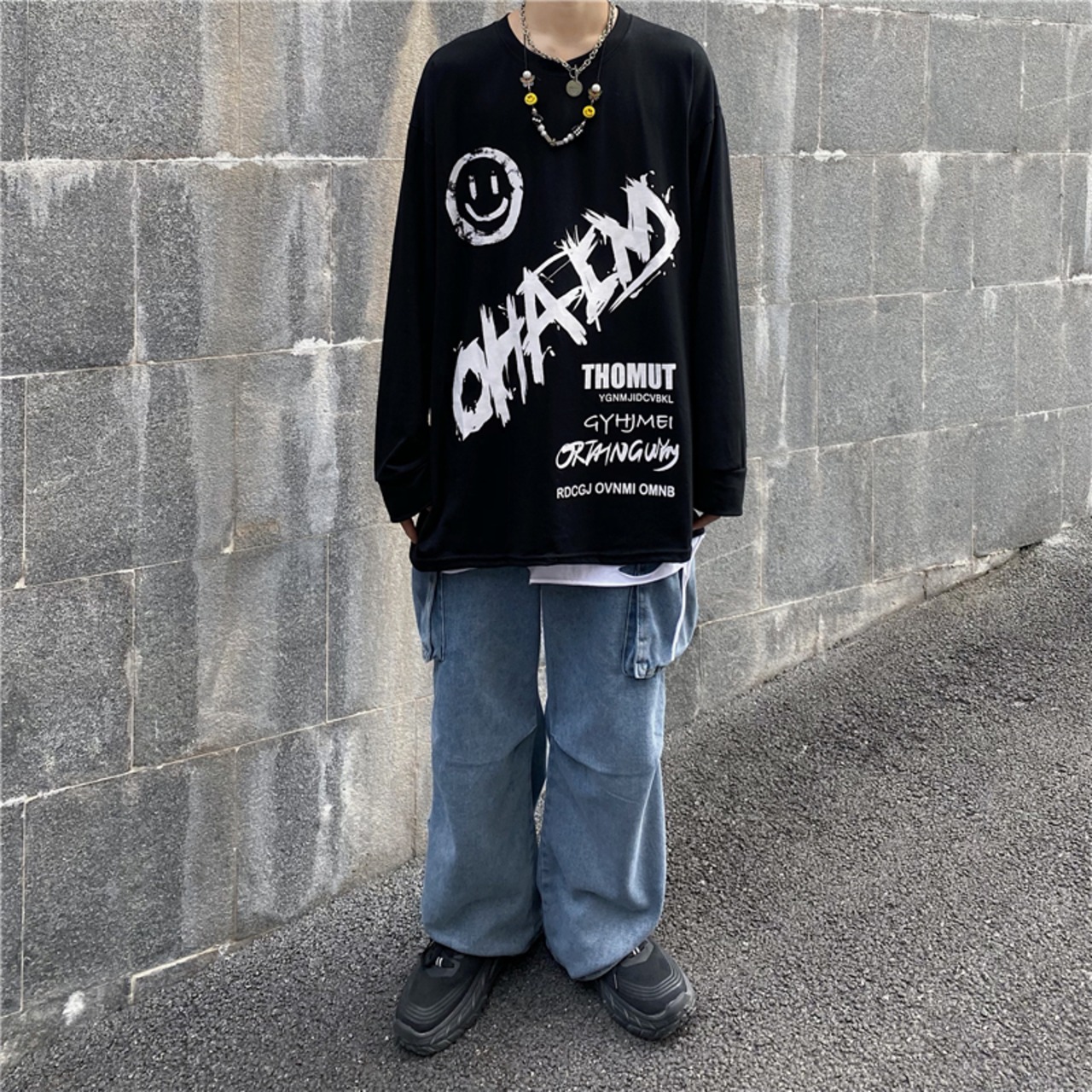 【送料無料】 プリントラウンドネック長袖スリーブTシャツ 大人女子☆ ロング ストリート 原宿系 ⦿韓国 韓流 オルチャン K-pop アイドル ジャケット スーツ Tシャツ カーディガン ニット フーディー トレーナー シャツ タンクトップ アクセサリー ペンダント ネックレス ブレスレット リング ピアス バッグ 7A31369906051 | K19 FASHION
