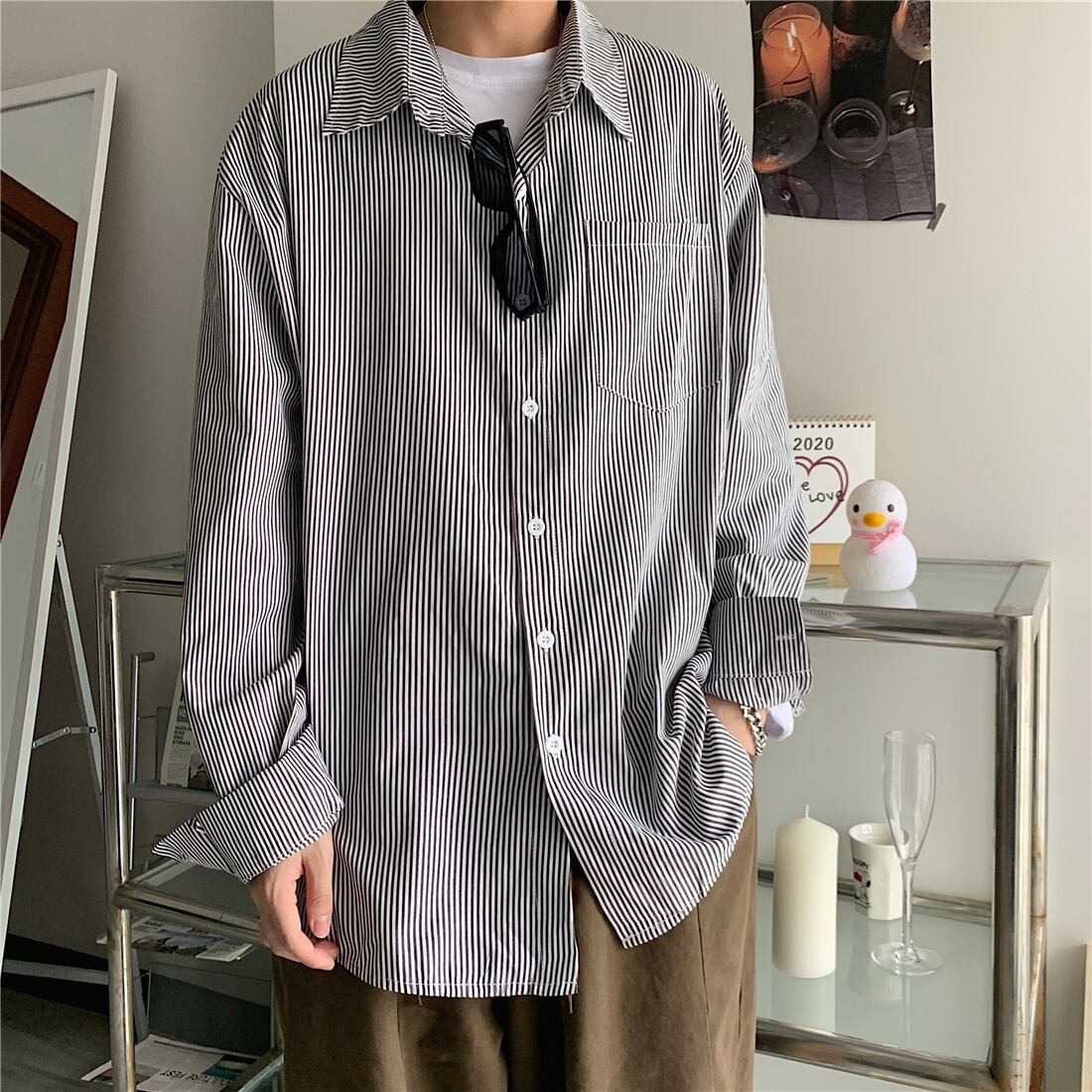 【送料無料】 スタンダード♡ストライプポケット長袖スリーブシャツブラウス大人女子☆ ロング レトロ 原宿系 ⦿韓国 韓流 オルチャン K-pop アイドル ジャケット スーツ Tシャツ カーディガン ニット フーディー トレーナー シャツ タンクトップ アクセサリー ペンダント ネックレス ブレスレット リング ピアス バッグ 7A14900815411 | K19 FASHION
