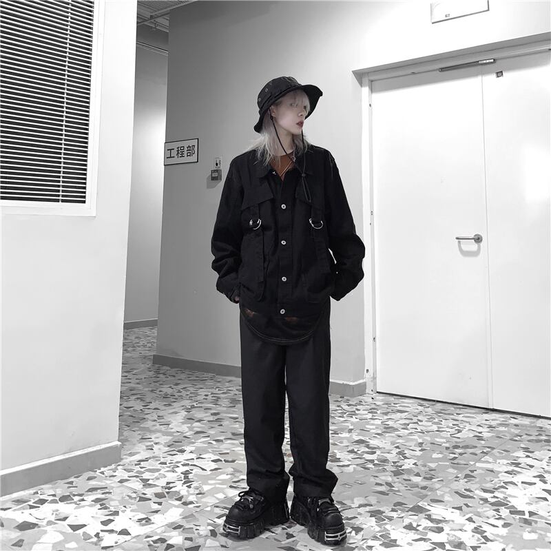 【送料無料】 ダーク♥カワイイ♥ジャケット 大人女子☆ ストリート ⦿韓国 韓流 オルチャン K-pop アイドル ジャケット スーツ Tシャツ カーディガン ニット フーディー トレーナー シャツ タンクトップ アクセサリー ペンダント ネックレス ブレスレット リング ピアス バッグ 7A43096018315 | K19 FASHION