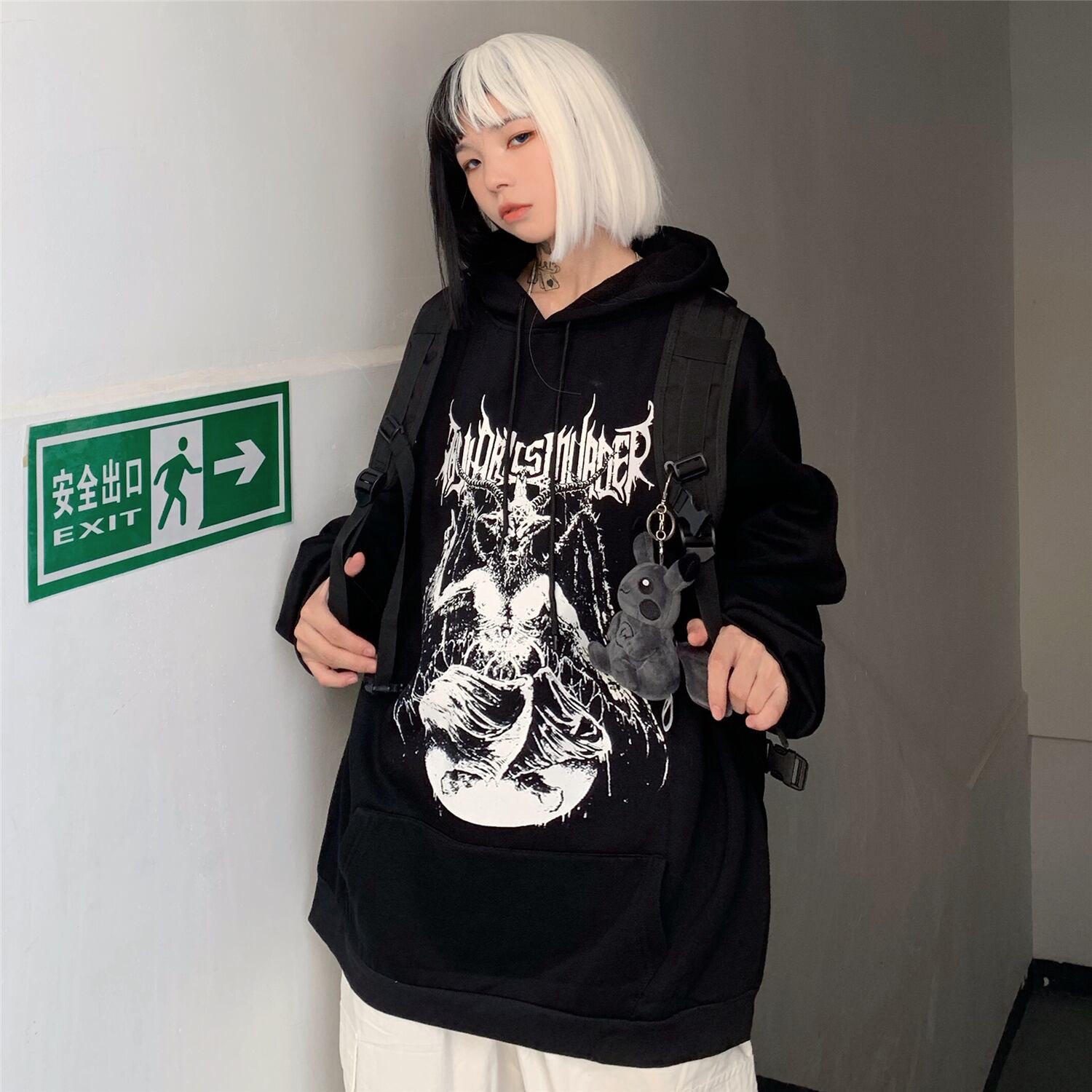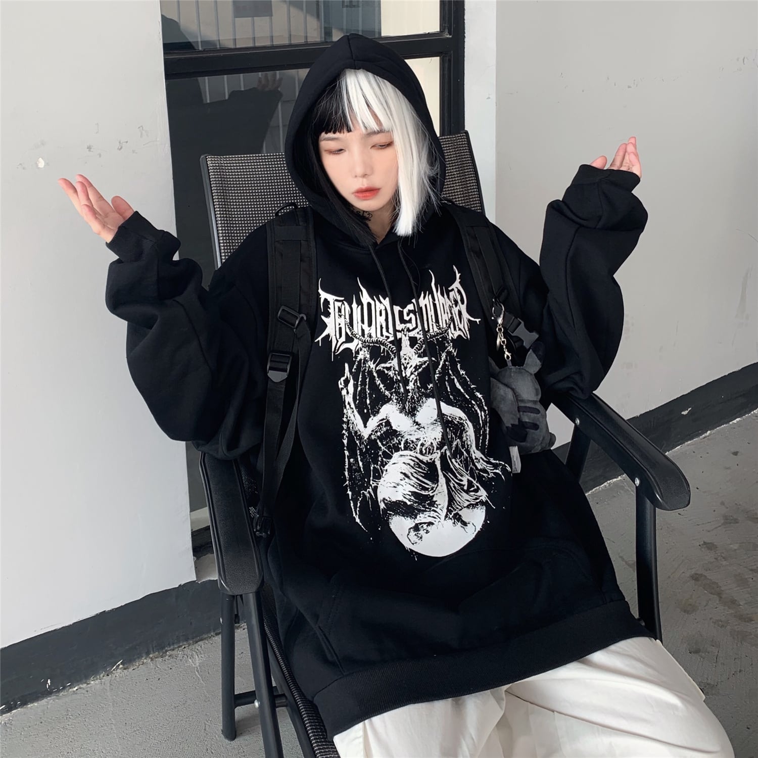 【送料無料】KOREAサタン柄オーバーサイズフーディー プルオーバー セーター メンズレディース 大人女子☆悪魔 ストリート 秋冬⦿韓国 韓流 オルチャン K-pop アイドル ジャケット スーツ Tシャツ カーディガン ニット フーディー トレーナー シャツ タンクトップ アクセサリー ペンダント ネックレス ブレスレット リング ピアス バッグ 7A49266004335 | K19 FASHION