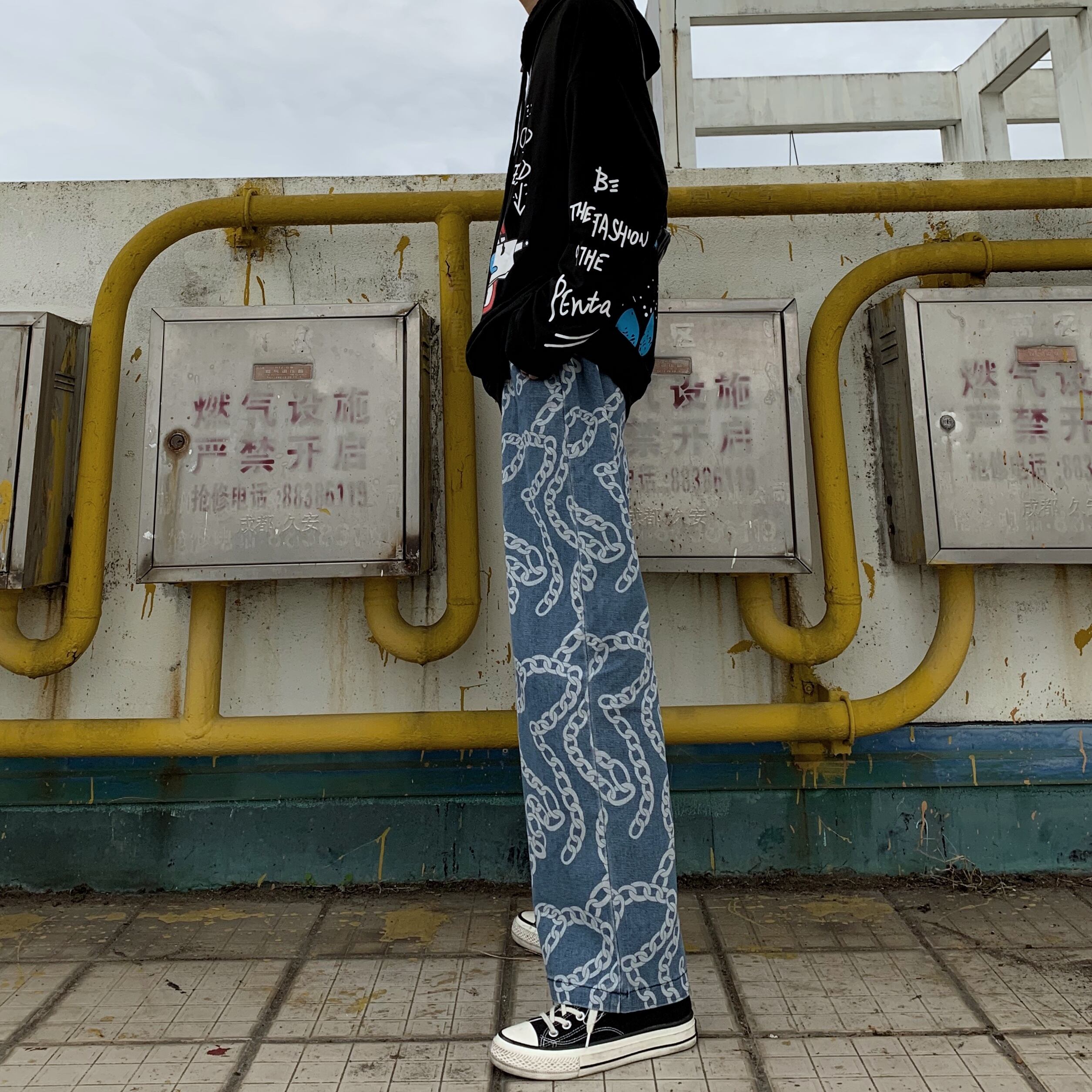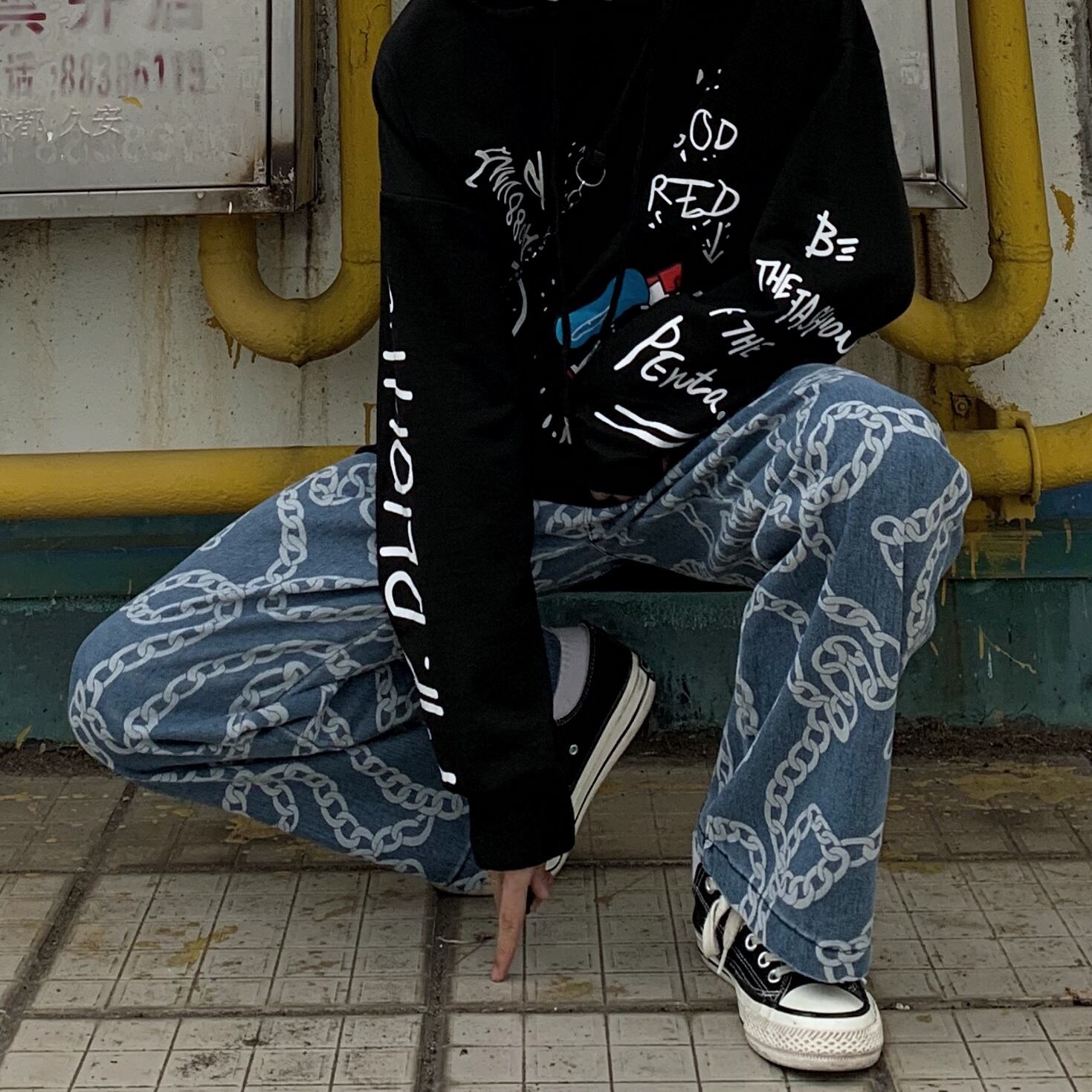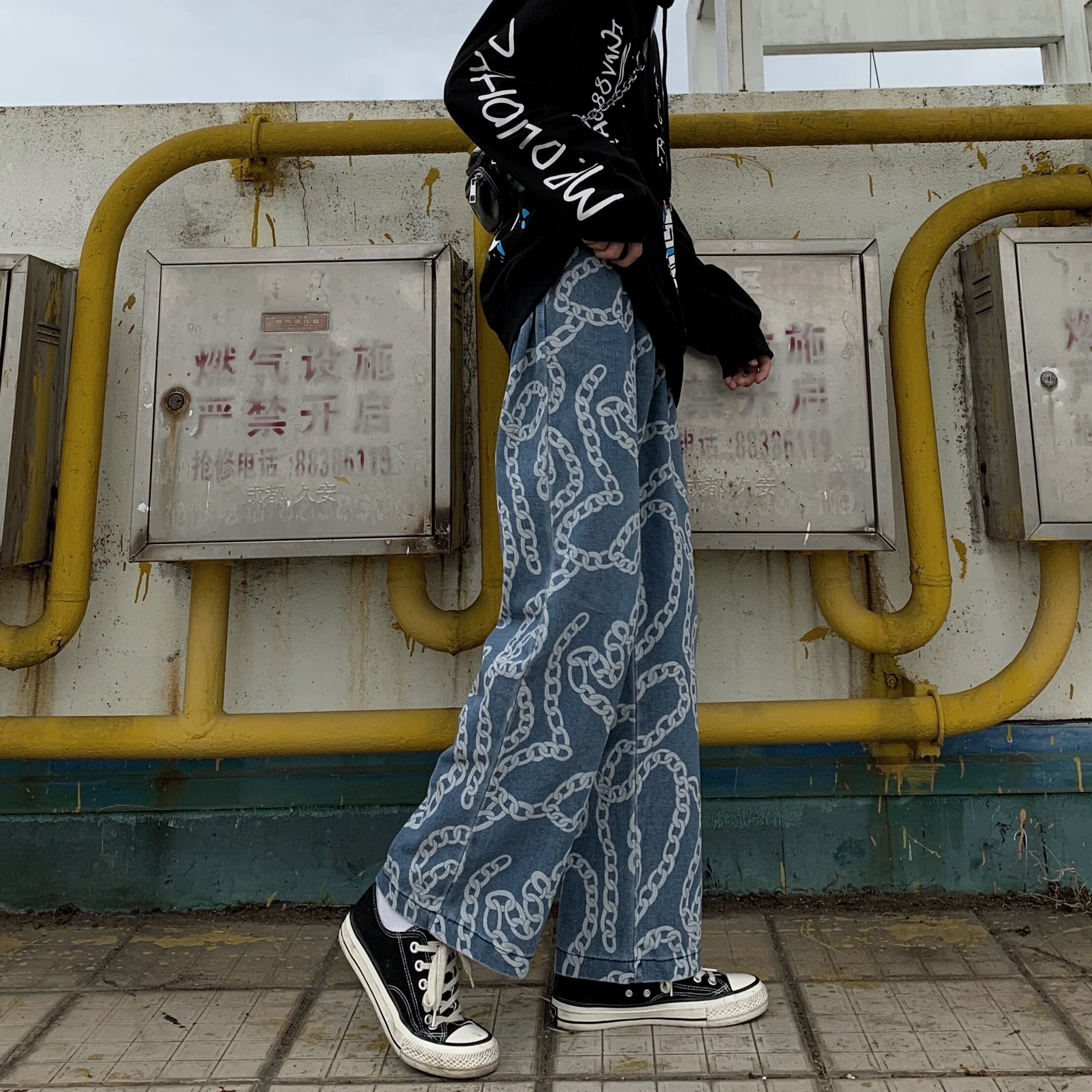 【送料無料】 チェーン プリントジーンズ パンツ 大人女子☆ ストリート ⦿韓国 韓流 オルチャン K-pop アイドル ジャケット スーツ Tシャツ カーディガン ニット フーディー トレーナー シャツ タンクトップ アクセサリー ペンダント ネックレス ブレスレット リング ピアス バッグ 7A17531282430 | K19 FASHION