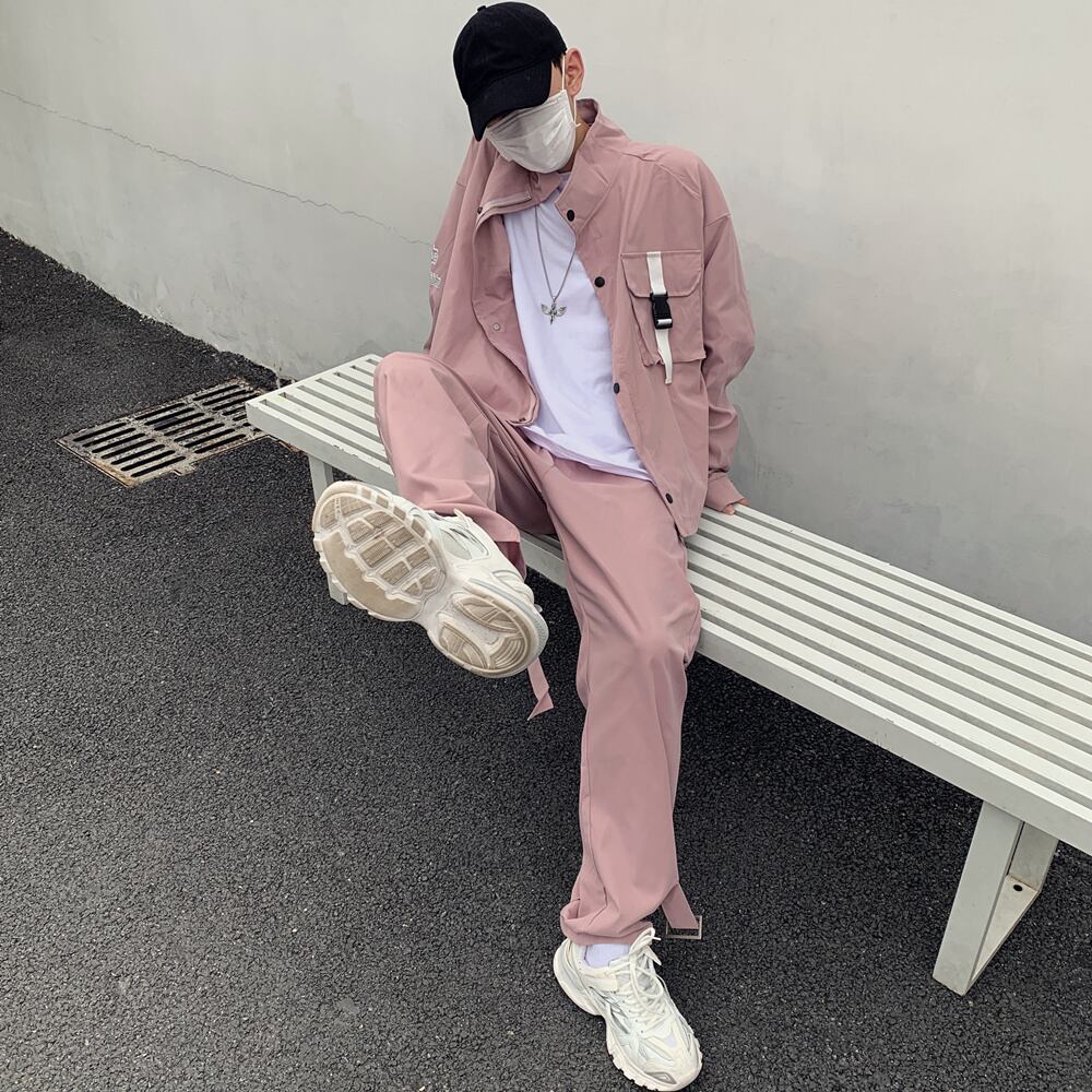 色:サッチェル付き黒ジャケット,黒いズボン,サッチェル付きピンクトップ,ピンクのパンツ