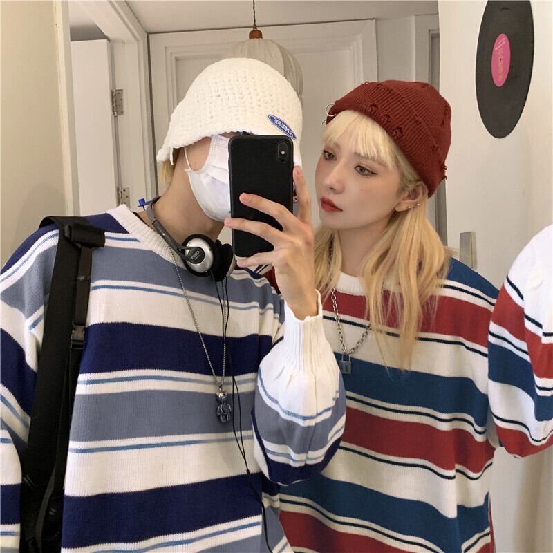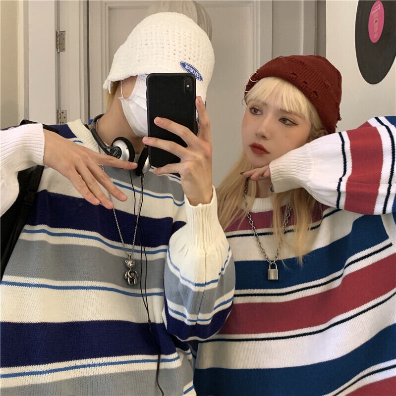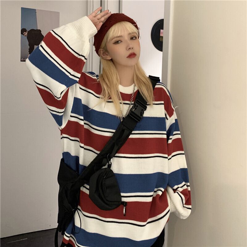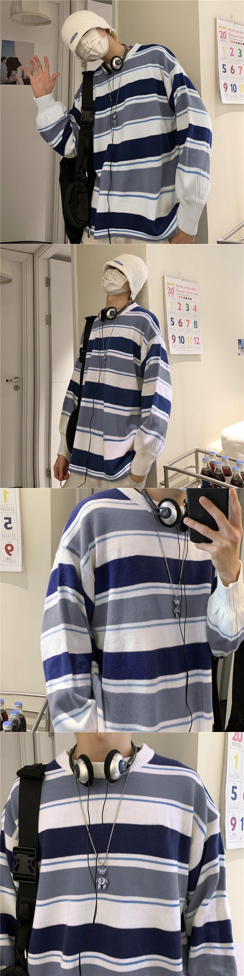 【送料無料】 ウィンターカラーラウンドネックストライプニットセーター 大人女子☆ 原宿系 冬物 ⦿韓国 韓流 オルチャン K-pop アイドル ジャケット スーツ Tシャツ カーディガン ニット フーディー トレーナー シャツ タンクトップ アクセサリー ペンダント ネックレス ブレスレット リング ピアス バッグ 7A14772104467 | K19 FASHION