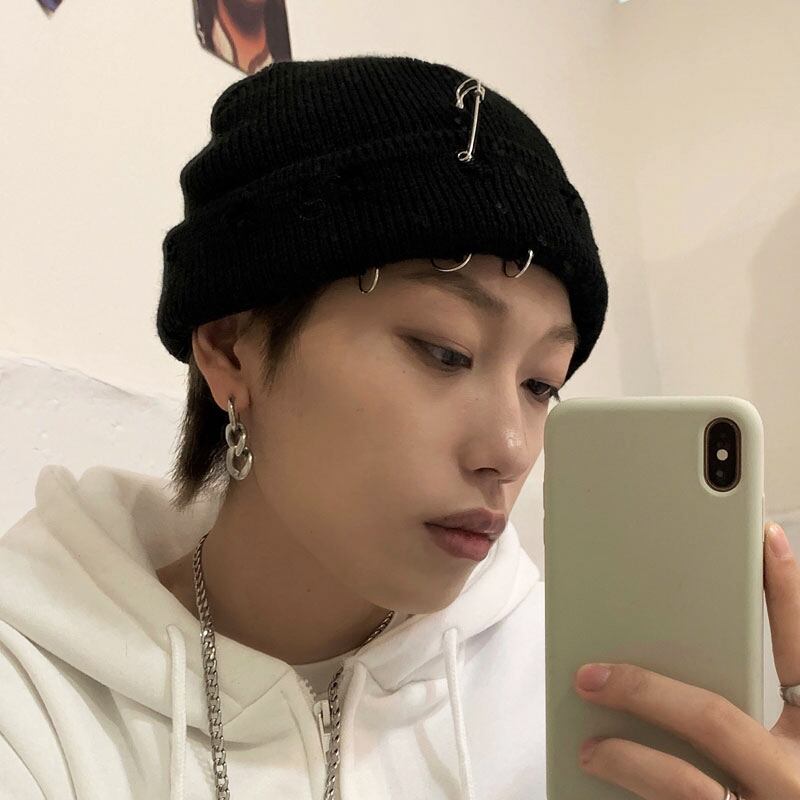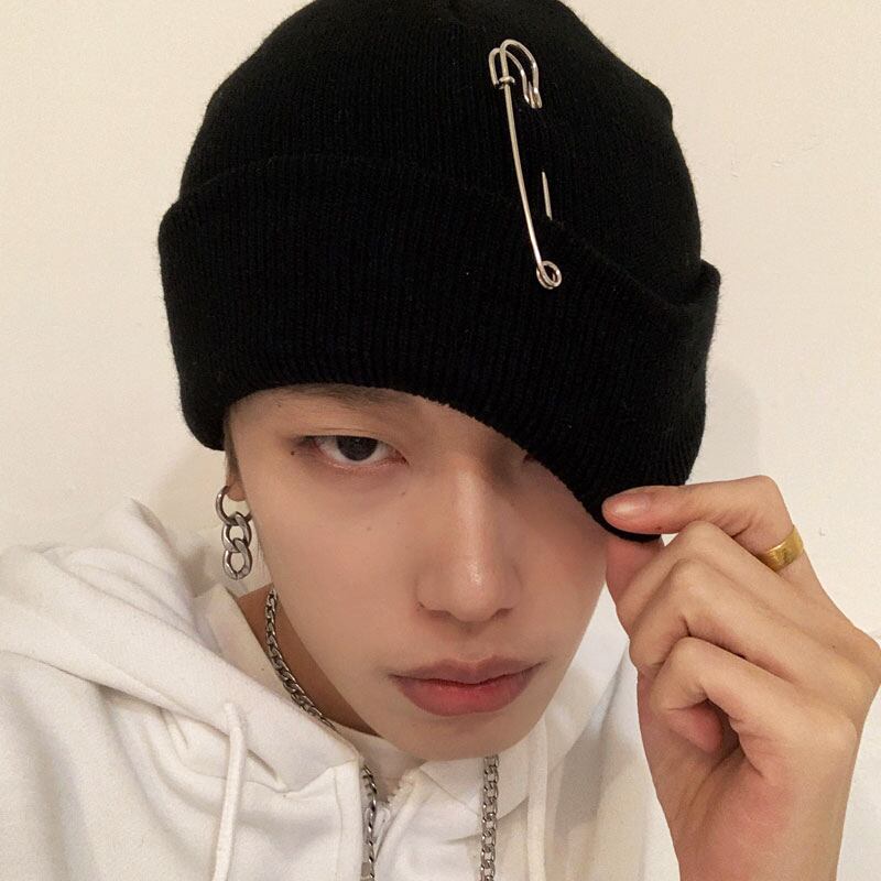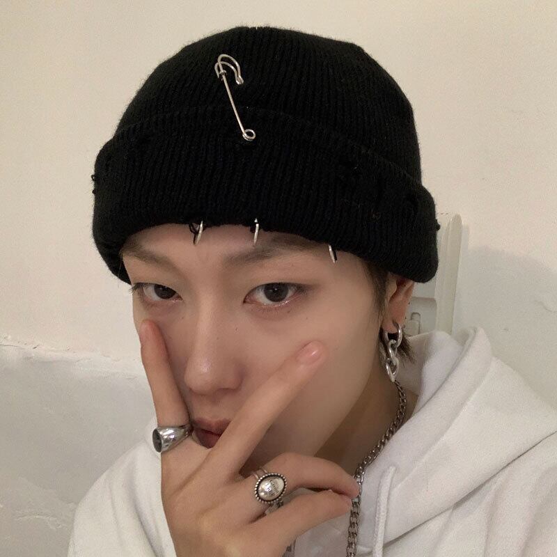 色:ブラックピンウールハット,ブラックホールフープハット