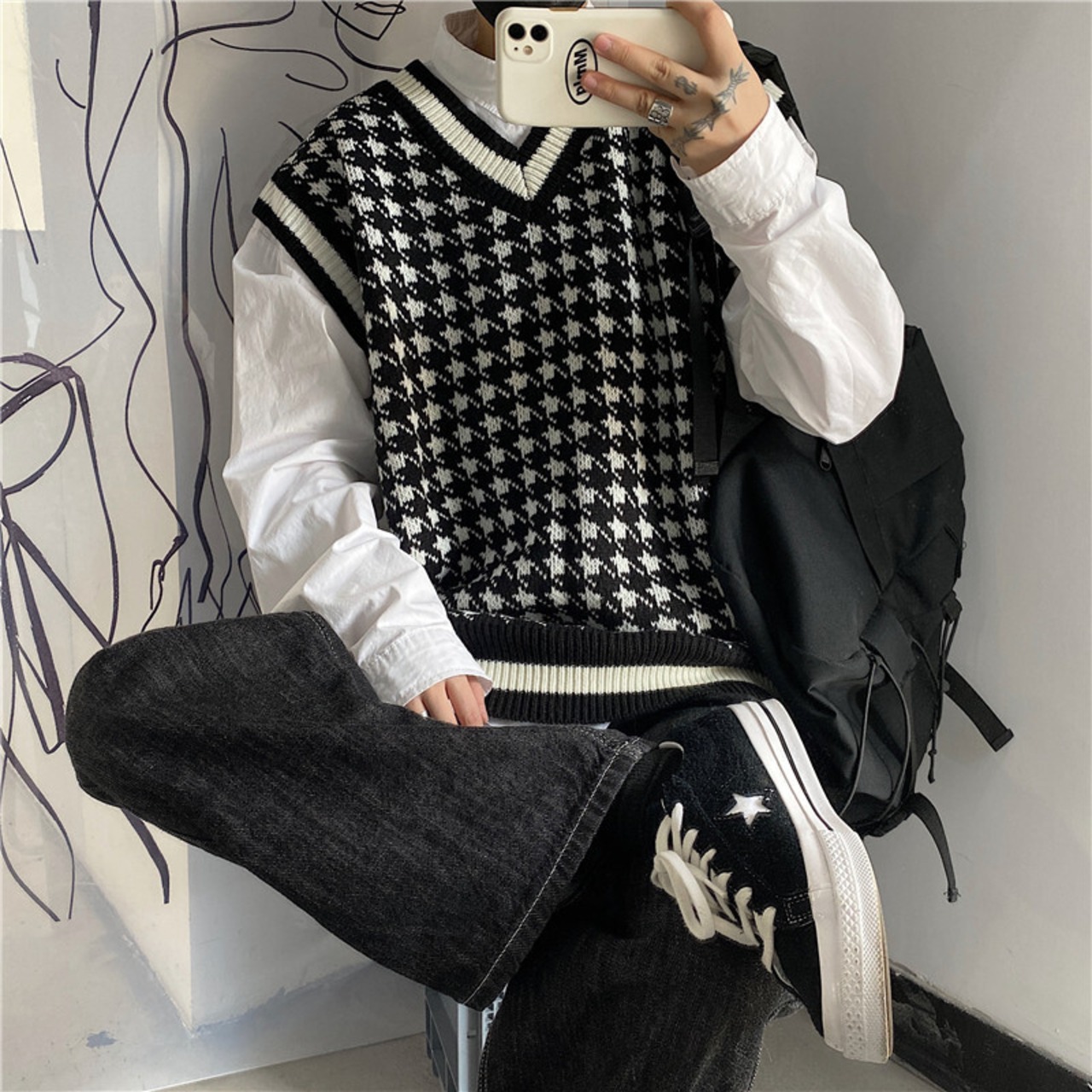 【送料無料】 ウィンターチェック柄ニット大人女子☆ 原宿系 冬物 ⦿韓国 韓流 オルチャン K-pop アイドル ジャケット スーツ Tシャツ カーディガン ニット フーディー トレーナー シャツ タンクトップ アクセサリー ペンダント ネックレス ブレスレット リング ピアス バッグ 7A88185700294 | K19 FASHION