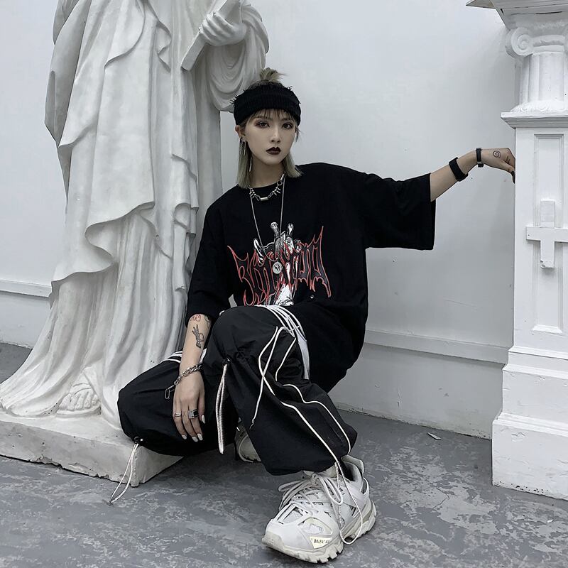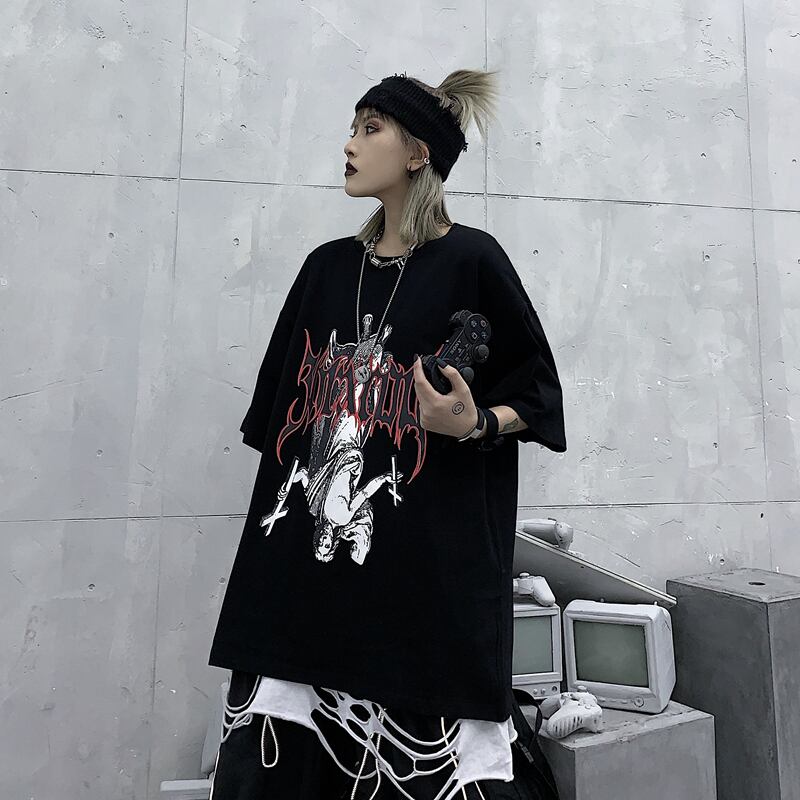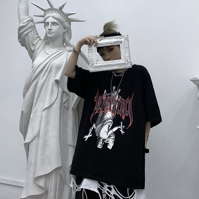 【送料無料】KOREA ダークプリント柄ルーズTシャツ メンズレディース 夏物 ✭韓国 韓流 オルチャン K-pop アイドル アクセサリー ペンダント ネックレス ブレスレット リング ピアス バッグ 春夏秋冬 韓国ドラマ 韓国服 Kpop帽子 Kpop雑誌 BTS NiziU TWICE BLACKPINK コリアン コリア 明洞 7A16127693135 | K19 FASHION