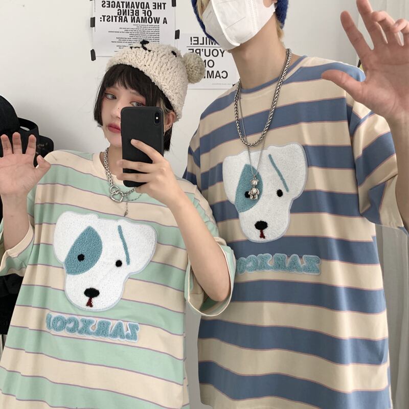 【送料無料】KOREA サマースタイルストライプ刺繍ルーズTシャツ レディース かわいい 夏物 ✭韓国 韓流 オルチャン K-pop アイドル アクセサリー ペンダント ネックレス ブレスレット リング ピアス バッグ 春夏秋冬 韓国ドラマ 韓国服 Kpop帽子 Kpop雑誌 BTS NiziU TWICE BLACKPINK コリアン コリア 明洞 7A75506975811 | K19 FASHION