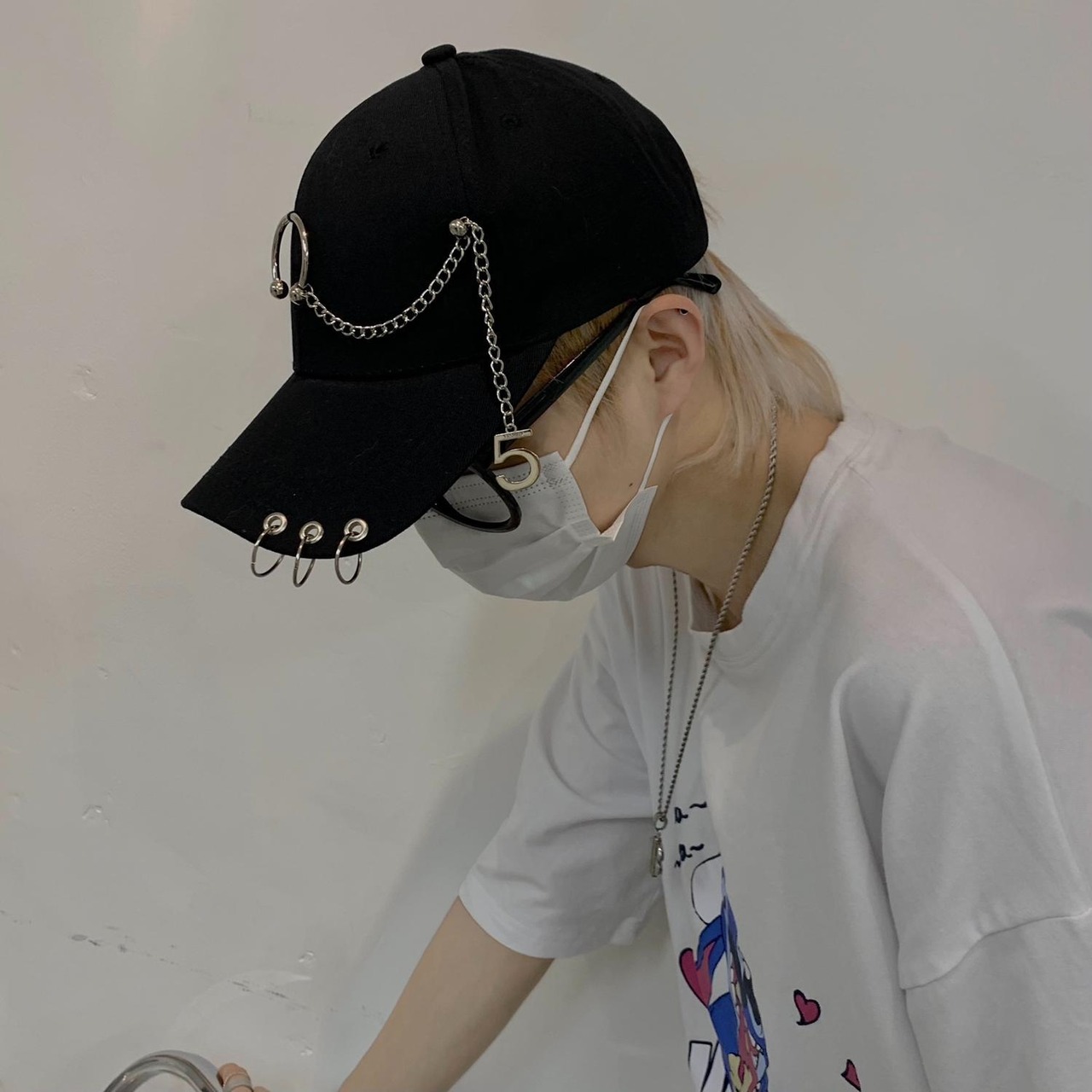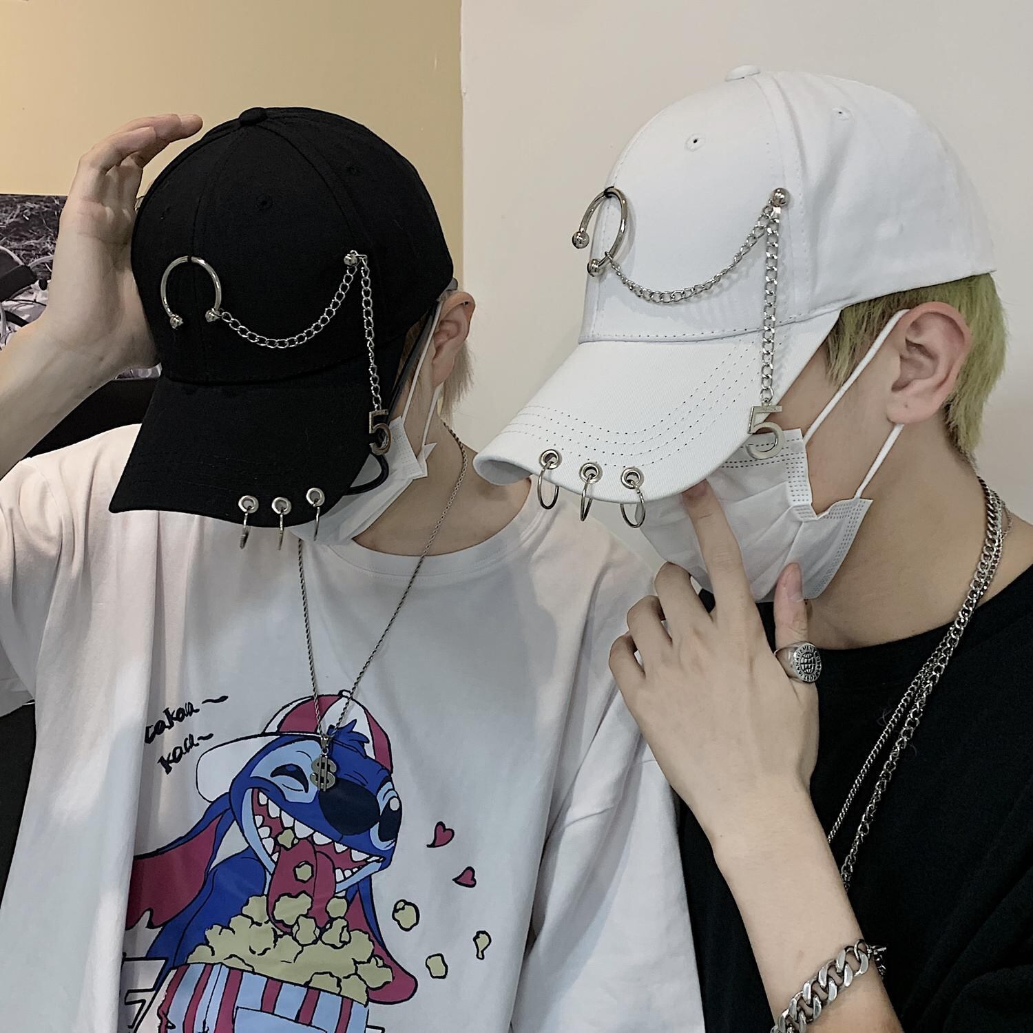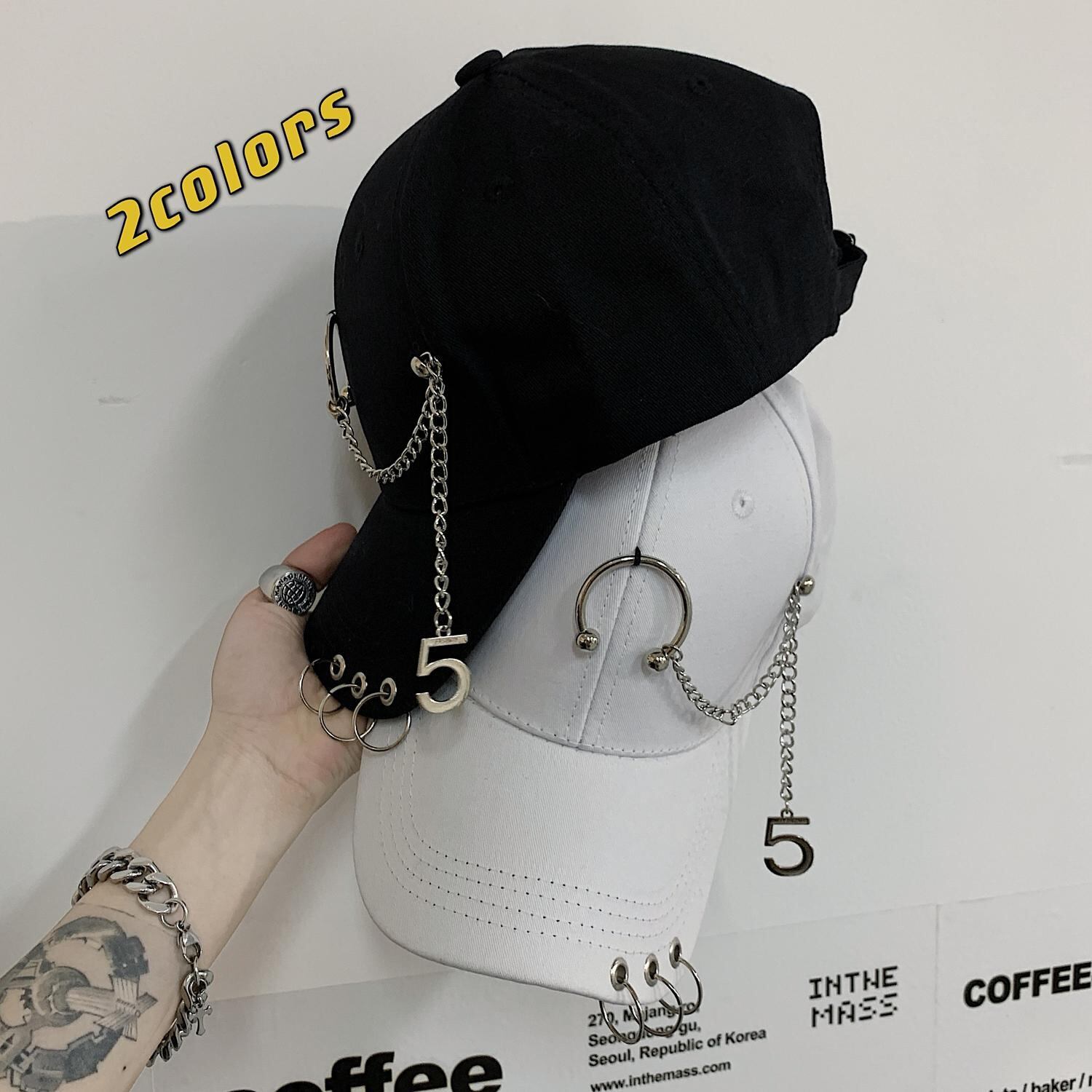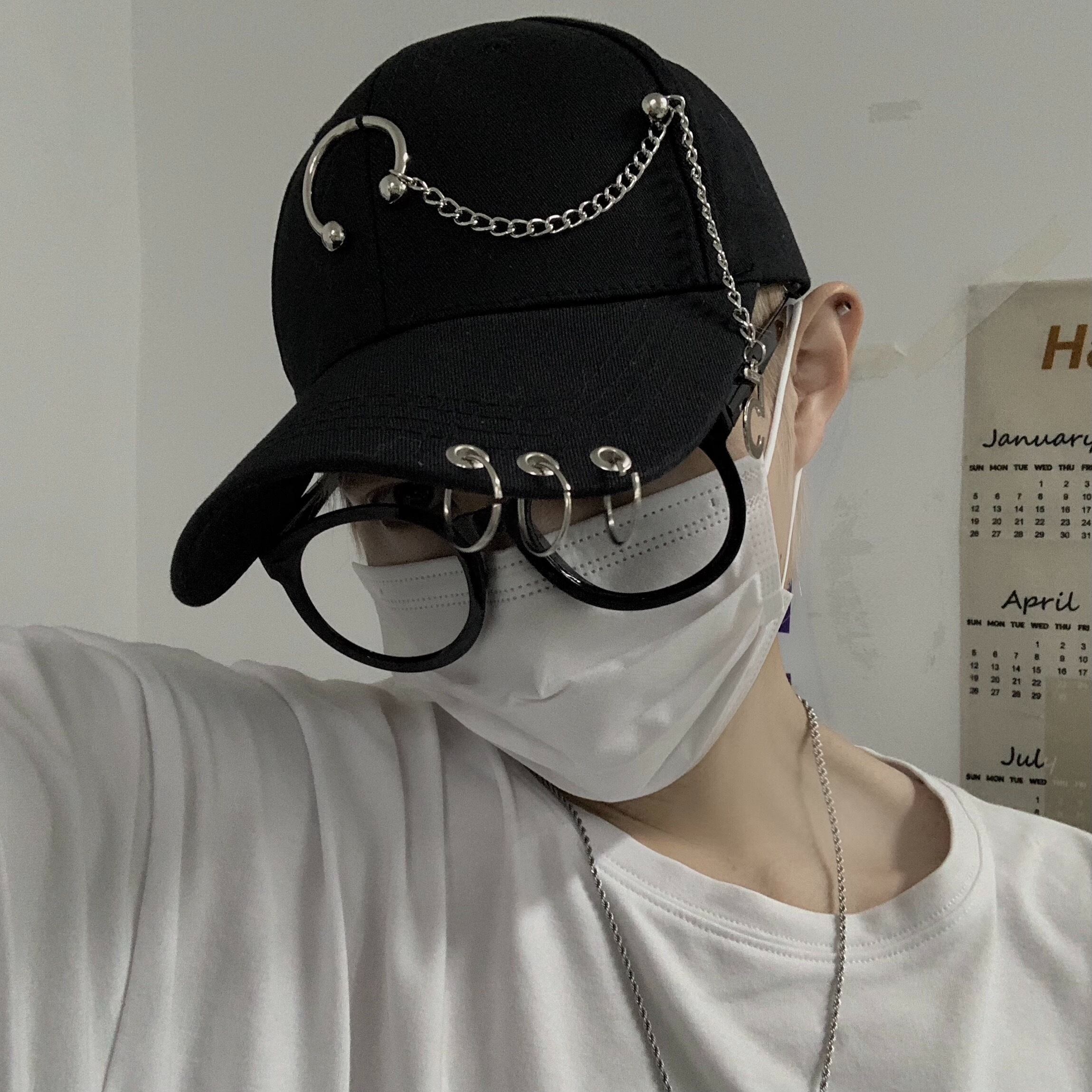 色:黒キャップ,白い帽子