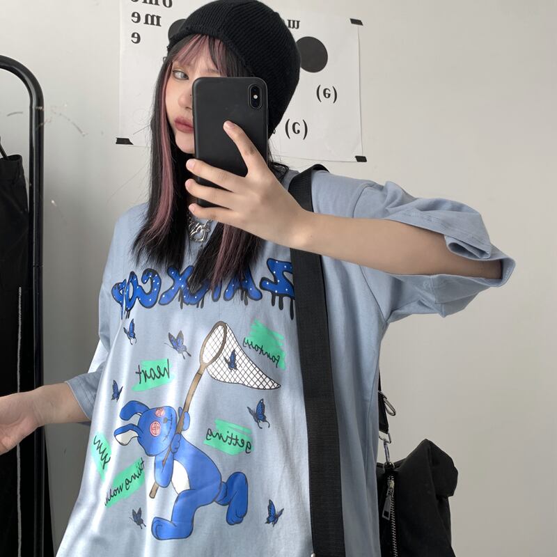 【送料無料】KOREA ブルーButterflyデザイン プリントルーズカジュアルTシャツ レディース ✭韓国 韓流 オルチャン K-pop アイドル アクセサリー ペンダント ネックレス ブレスレット リング ピアス バッグ 春夏秋冬 韓国ドラマ 韓国服 Kpop帽子 Kpop雑誌 BTS NiziU TWICE BLACKPINK コリアン コリア 明洞 7A49060960018 | K19 FASHION