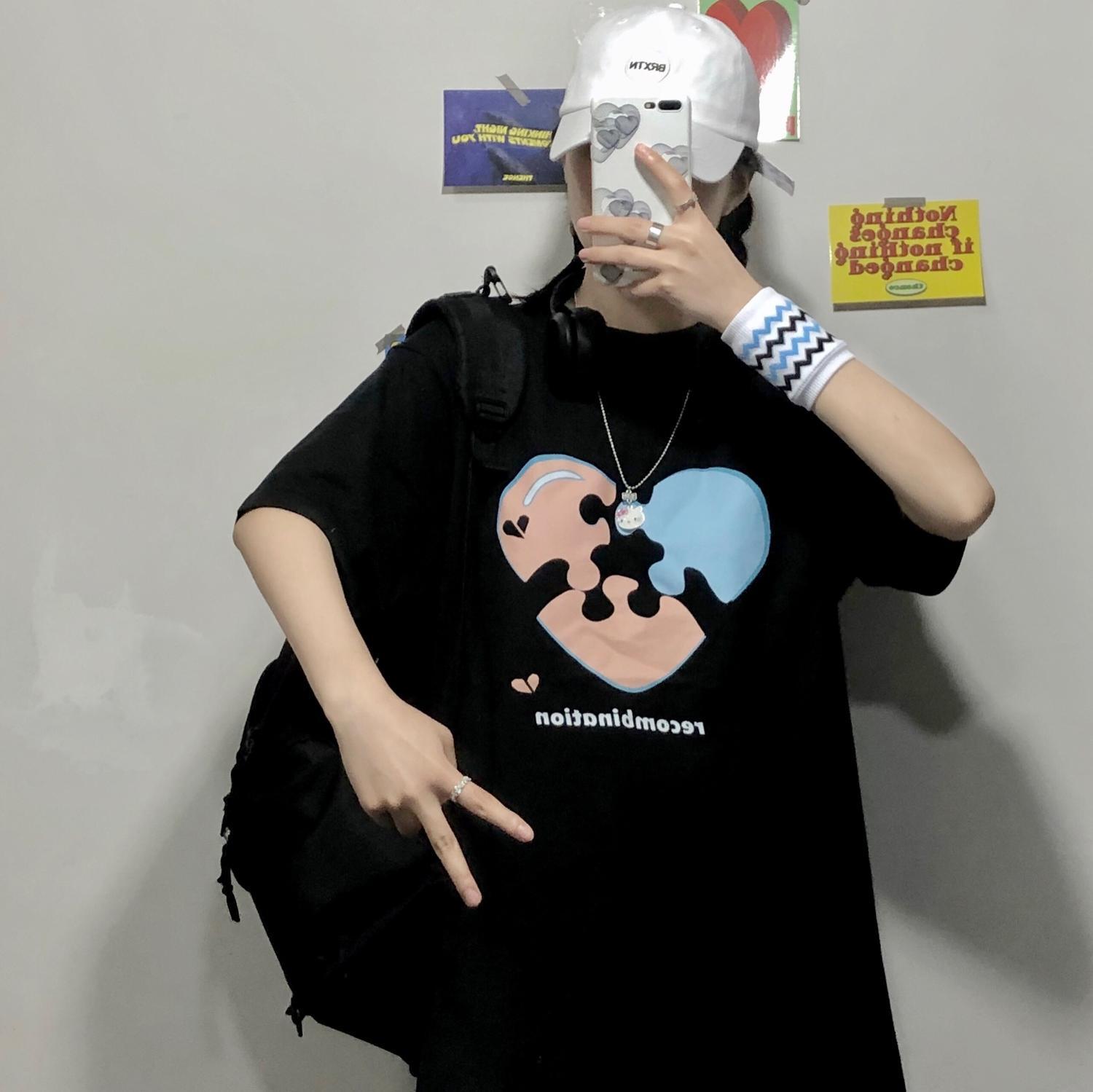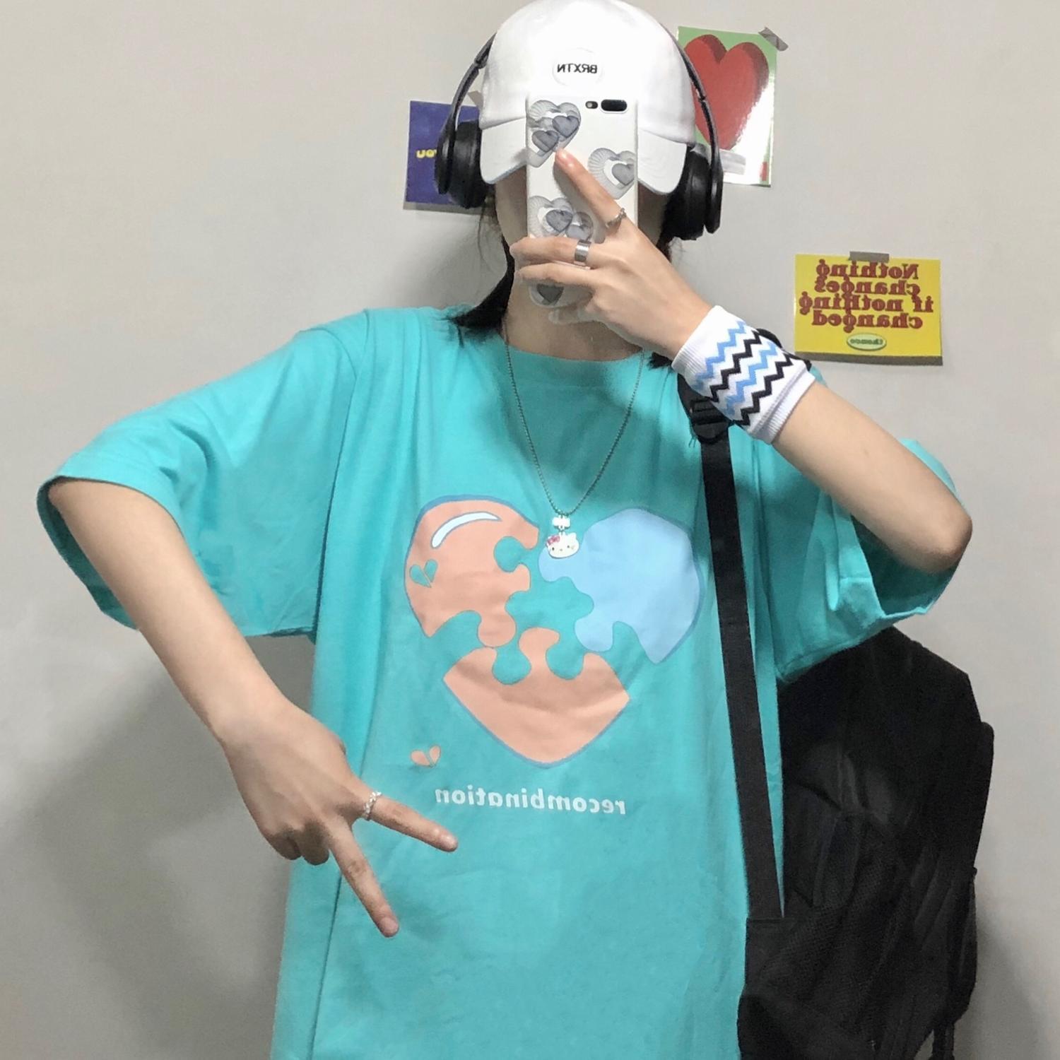 【送料無料】KOREA サマープリント柄ラウンドネックルーズ半袖スリーブTシャツ レディース ショート ハーフスリーブ 夏物 Oネック ✭韓国 韓流 オルチャン K-pop アイドル アクセサリー ペンダント ネックレス ブレスレット リング ピアス バッグ 春夏秋冬 韓国ドラマ 韓国服 Kpop帽子 Kpop雑誌 BTS NiziU TWICE BLACKPINK コリアン コリア 明洞 7A91735043061 | K19 FASHION